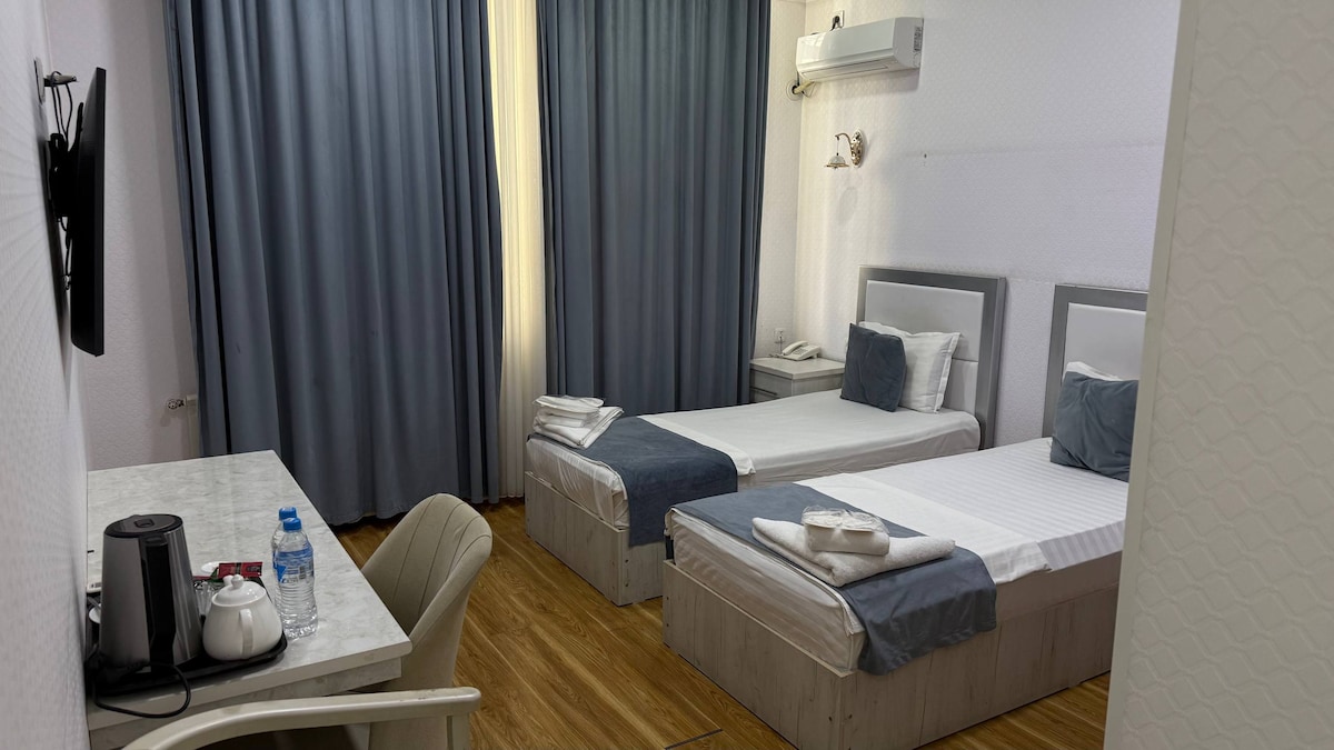 Hotel Hirat Inn — современный и уютный отель с высоким уровнем сервиса. Комфортные номера с качественной мебелью, просторными кроватями и современной техникой обеспечат приятное пребывание. Дружелюбный персонал и удобное расположение подойдут для отдыха и деловых поездок. Гости могут воспользоваться бесплатным Wi-Fi, круглосуточной поддержкой и трансфером. Hotel Hirat Inn — отличный выбор для вашего комфортного отдыха.