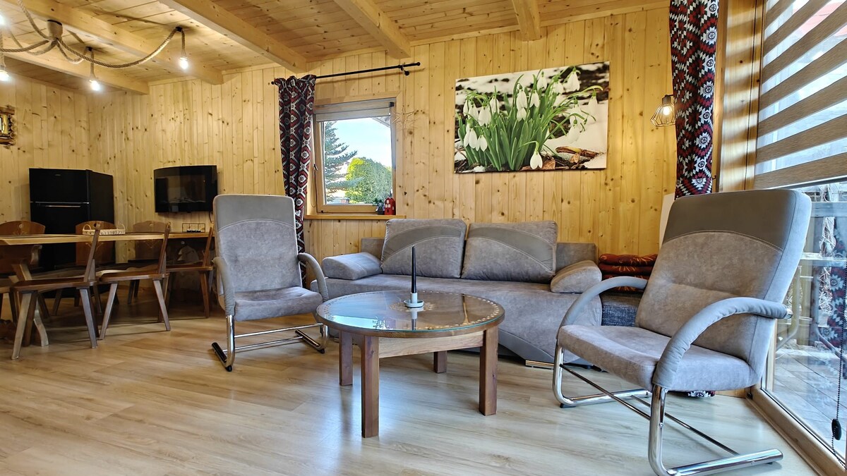 Déan dearmad ar strus laethúil agus lig do scíth in Rychlinowe Cottages. Lonnaithe i gceantar gleoite, tá radhairc shléibhe dhodhearmadta ar fáil inár dteachíní. Is í an áit fhoirfe í le teacht i séasúir an tsamhraidh agus an gheimhridh araon, áit ar féidir leat sult a bhaint as draíocht na dTatras i rith na bliana. Cuirimid taobh istigh compordach ar fáil ina bhfuil dhá sheomra leapa, seomra suí fairsing, seomra folctha ina bhfuil cithfholcadán, leithreas, agus leithreas ar leith, agus gach rud a theastaíonn uait le bheith ar do shuaimhneas. Is féidir le suas le seachtar freastal ar an teachín.