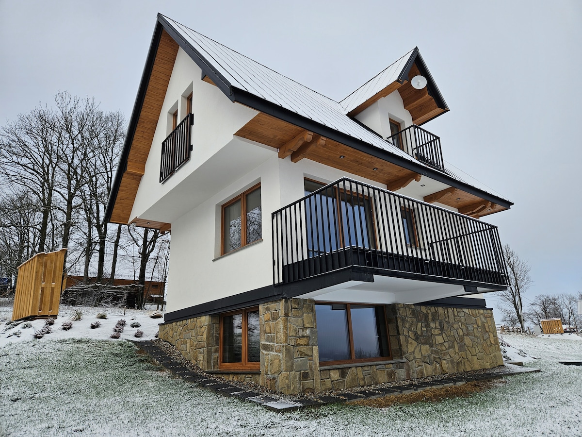Suíomh pictiúrtha le radharc ar shléibhte Tatra. Foraois, abhainn, fánaí sciála, folcadáin theirmeacha, cosáin rianaithe, cosáin rothair in aice láimhe. Maisiúchán nua - aimseartha le gnéithe d'adhmad. Sa teach gheobhaidh tú gach rud a theastaíonn uait le haghaidh fanacht compordach: - jacuzzi agus spota tine chnámh - ardán lánléargais, gríoscán, cathaoireacha deice - seomra suí fairsing le tolg compordach, WIFI, Netflix - áit itheacháin agus cistin oscailte le miasniteoir - 2 sheomra leapa le leapacha ilchríochacha - 2 sheomra folctha - páirceáil.