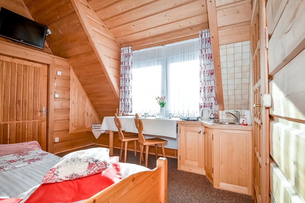 Teachín uathúil atá suite in Czerwienno, 14km ó Zakopane, ar réadmhaoin phríobháideach i gclúdach cána spré agus le radharc álainn ar Shléibhte Tatra. Tá 2 sheomra leapa ann, le balcóiní agus 6 leaba san iomlán, seomra suí fairsing ina bhfuil cistinéad feistithe, agus seomra folctha. Críochnaithe le hadhmad agus cloch nádúrtha. Tá poll dóiteáin nó láthair beárbaiciú ann freisin. Foirfe chun éalú an hustle agus bustle an nádúir. Tá cosáin fánaíochta agus rothaíochta, linnte teirmeacha, agus ardaitheoirí sciála in aice láimhe.