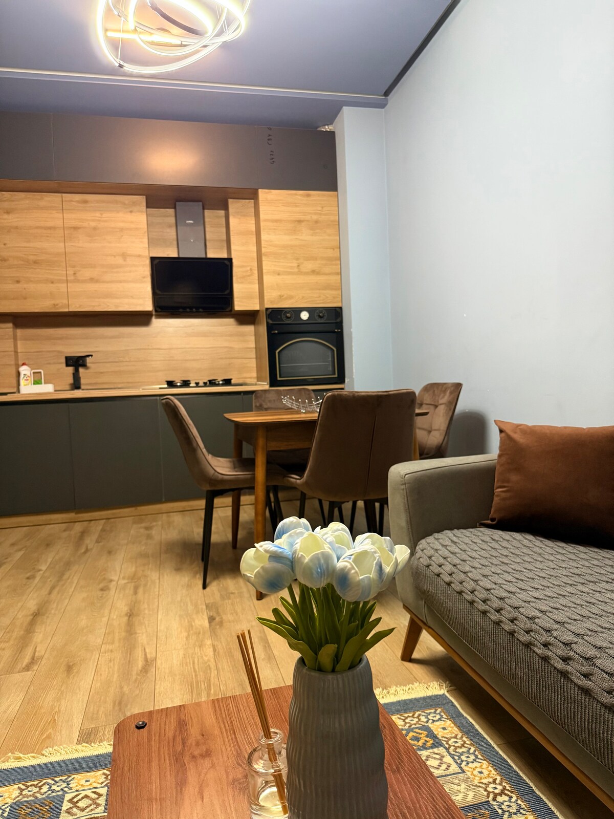 Coinnigh simplí agus teolaí é ag an árasán síochánta,nua - aimseartha seo atá suite go lárnach le balcóin mhór i gcroílár an cheantair is mó le rá in Tbilisi — Vake. Tá gach rud atá uait thart timpeall ort: Linn Snámha Vake, ionaid aclaíochta, ollmhargaí, cógaslann, ambasáidí, bácús Briotánach, agus Gastronome thíos staighre. Siúl go Páirc Vake i 5 nóiméad nó tiomáint go Turtle Lake agus an Músaem Eitneagrafaíochta. Bain sult as caiféanna in aice láimhe amhail,, Antree " agus na bialanna is fearr amhail,, Tsiskvili ". Tá iompar poiblí díreach taobh amuigh den fhoirgneamh.