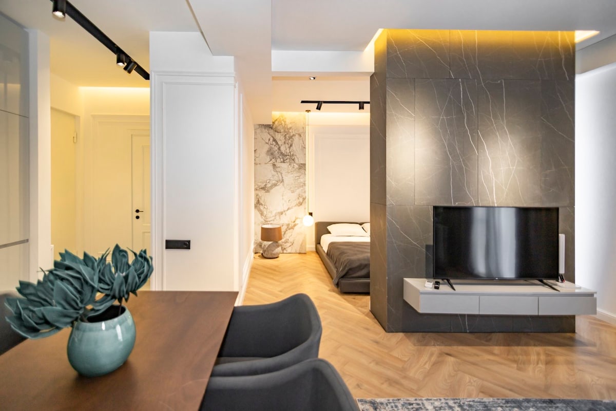Bain sult as fanacht síochánta san árasán seo le balcóin phríobháideach, atá suite go díreach i bPáirc Mziuri — tearmann glas méith i gcroílár na cathrach. Foirfe do thaistealaithe aonair, do lánúineacha, nó do chianoibrithe atá ag lorg compoird, áise agus dúlra díreach taobh amuigh den doras. Is éalú cathrach foirfe é seo le gach compord nua - aimseartha. Ciallaíonn cónaí san árasán seo go bhfuil tú i lár Tbilisi, ach go bhfuil tú timpeallaithe ag síocháin agus áilleacht an dúlra — cothromaíocht neamhchoitianta de shaol bríomhar na cathrach agus spás glas suaimhneach.