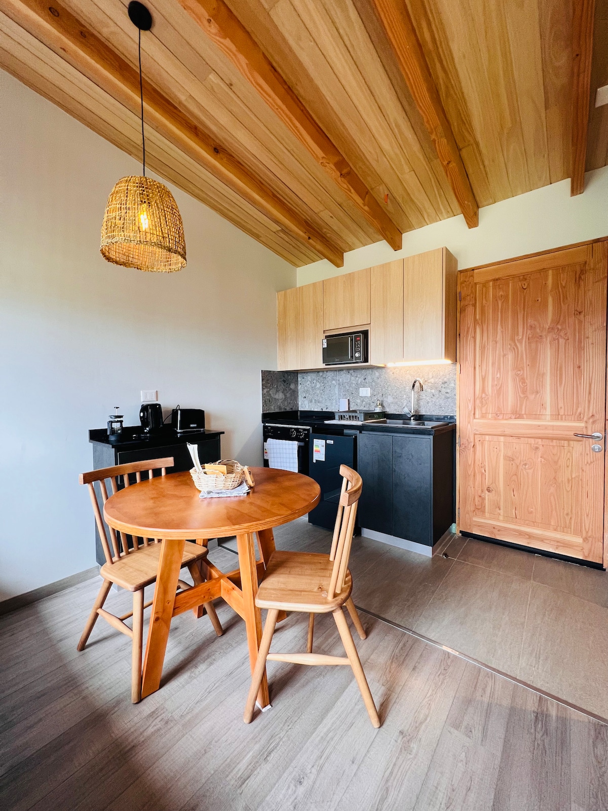 Is cábán teolaí é Canelo Loft do bheirt, le radharc álainn ar na bolcáin agus foraois álainn dhúchasach. Bloc árasán ciúin sábháilte, oiriúnach do scíth a ligean. Déan dearmad ar an línéadach agus ar na tuáillí. Wi - Fi, Teilifís Chliste, A/C, leaba rímhéide, tobán te (san áireamh sa phraghas🤩!), cistin agus páirceáil lánfheistithe. Gar don tráchtáil áitiúil. NÓTA: D'fhonn fanacht leat leis an tobán te, ní mór duit áirithint a dhéanamh dúinn 3 lá roimh ré.
