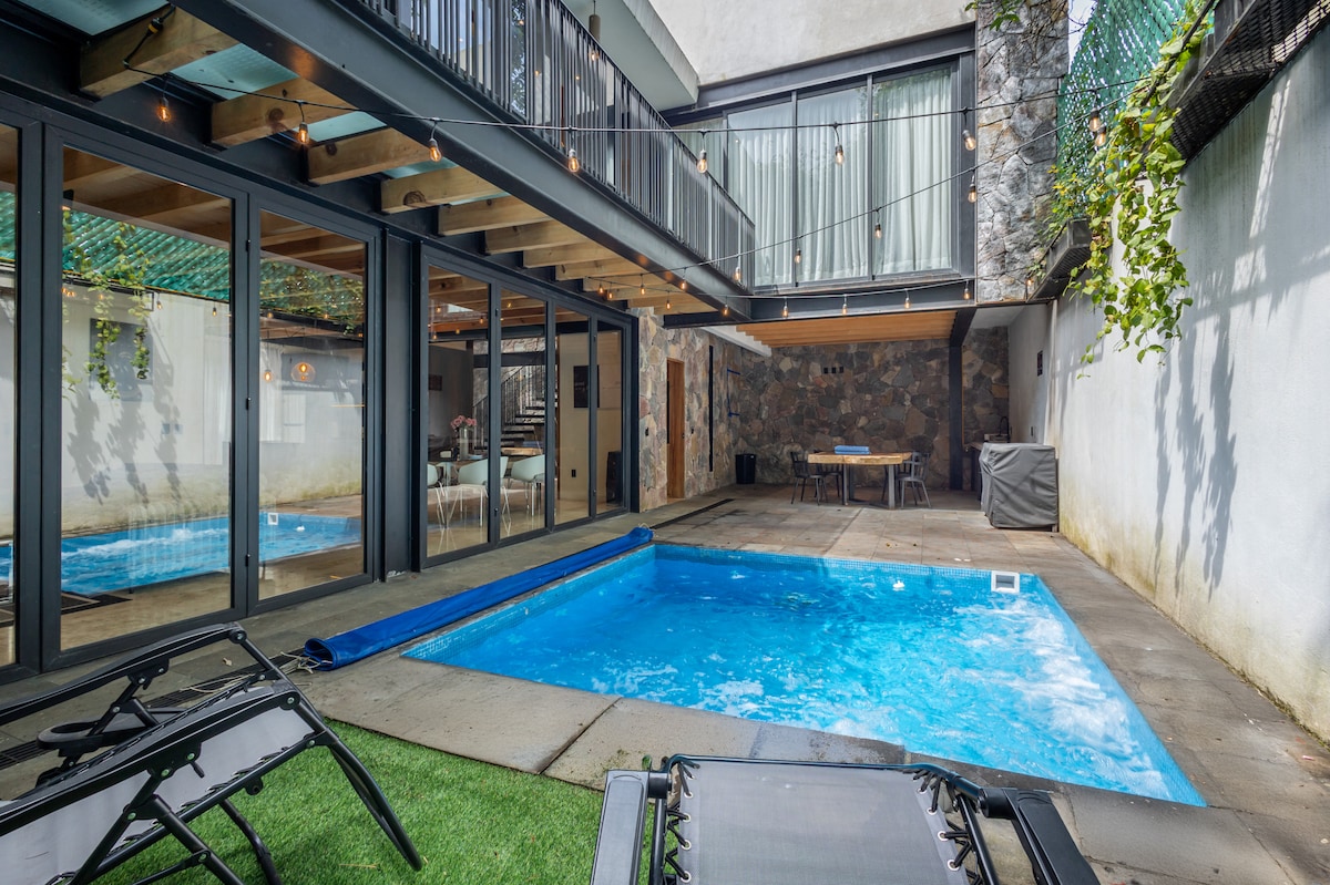 ☑ 9,000 m2 of PRIVATE land in Avándaro ☑ Small Indoor Pool ☑ River ☑ Grill ☑ Fireplaces ☑ Tumbling ☑ Orchard ☑ Fun Swing by the river ☑ Pizza Oven ☑ Fast Wi-Fi ☑ Ambient music ☑ 65" TV with streaming, Disney+, Prime Video and Netflix ☑ Walking paths ☑ 100+ Trees Beautiful private wooded land surrounded by a river and gardens. Near Monarch butterfly Sanctuary! Don't worry about cooking, it includes cleaning of common areas and cook! IDEAL FOR FAMILIES, GROUPS OF FRIENDS AND RELAXING!