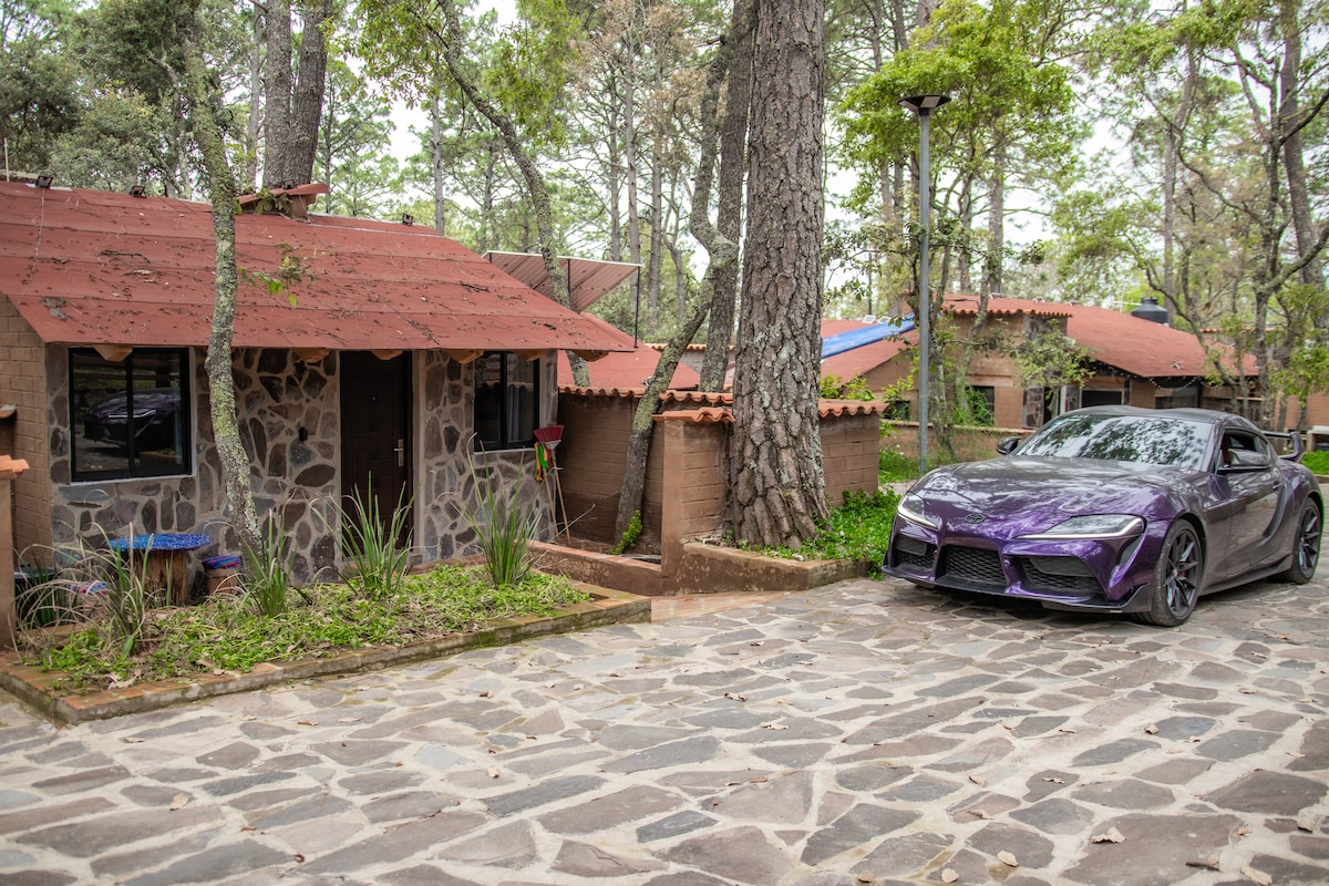 Esta parte del bosque se caracteriza por sus grandes árboles, aves, ardillas, conejos y noches estrelladas que, en compañía de fogatas y buena vibra, lo hacen un gran lugar para conectar contigo mismo. Podrás disfrutar de una cabaña de piedra al estilo toscano, con todas las comodidades que la vuelven muy acogedora. Seguridad 24hrs. Perfecta para planes románticos, de descanso o para quien busca trabajar fuera de la rutina. A 15 minutos del centro de Tapalpa.