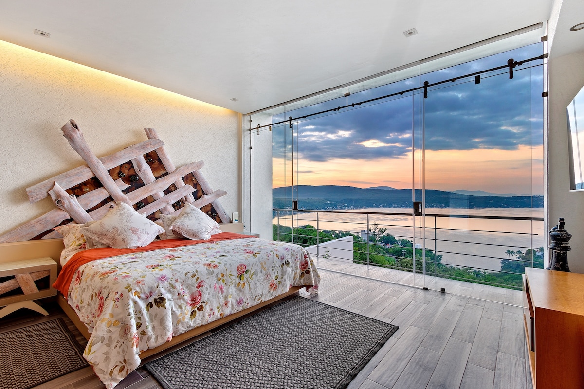 Is é La Vista (Spáinnis le haghaidh “The View ”) an cineál áite nach dteastaíonn uait a fhágáil choíche. Ón nóiméad a thiocfaidh tú, gheobhaidh tú an radharc is fearr in Tequesquitengo: linn snámha éigríche, Jacuzzi, agus glasra méith mórthimpeall an locha. Ina theannta sin, tá rochtain dhíreach ar an loch - foirfe don bhádóireacht nó don sciáil uisce. Cibé acu an bhfuil tú anseo chun do scíth a ligean nó chun spraoi a bheith agat, tá gach rud san áit seo: cistin lasmuigh, cúirt padel, ámóga, agus baill foirne a chócarálann agus a chuireann ar do shuaimhneas thú.