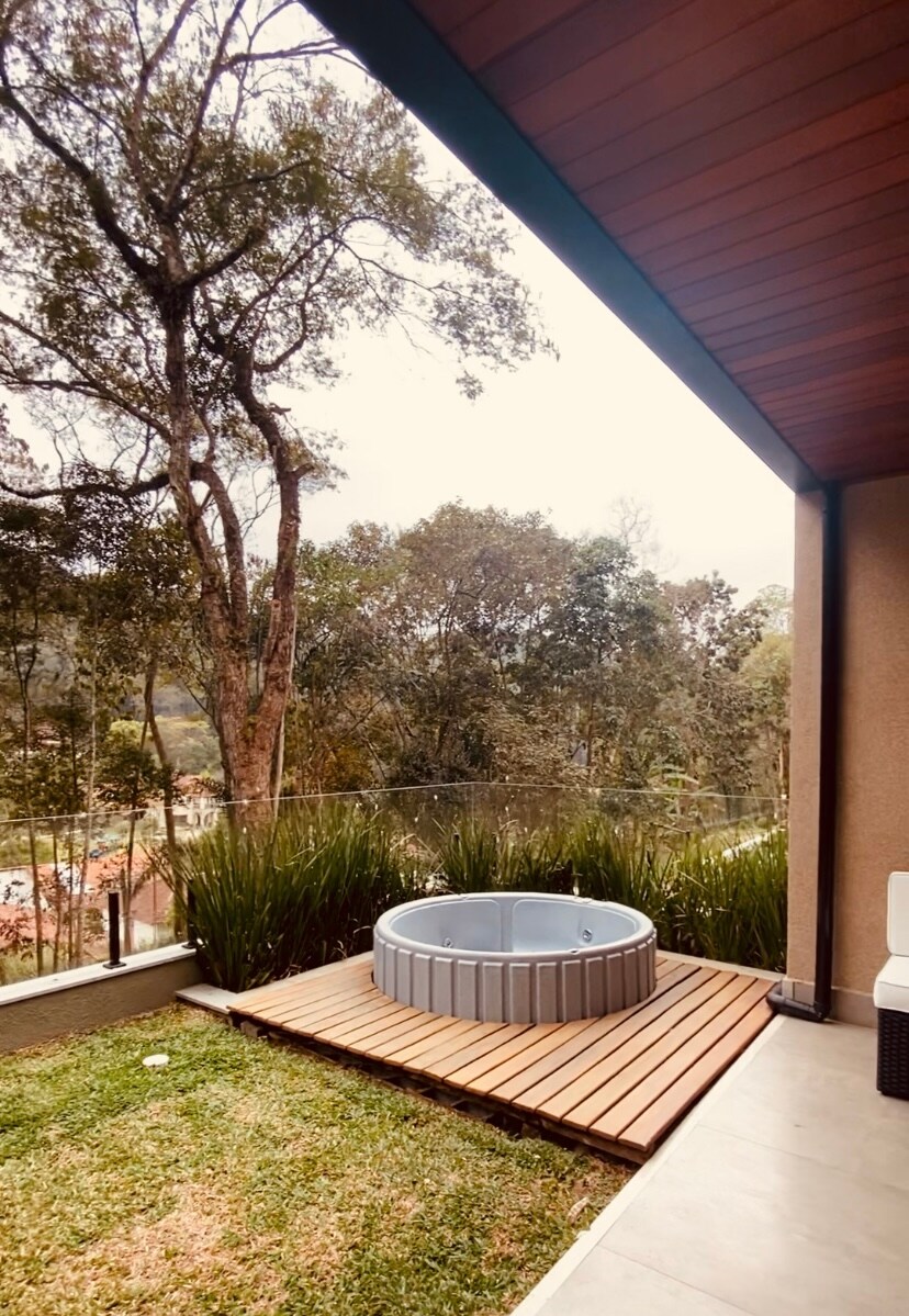 Fáilte go dtí Casa Bem Viver sa Serra. An áit fhoirfe chun do scíth a ligean i sábháilteacht agus i stíl. Tá 02 svuít ann, le: leaba dhúbailte, cófraí agus aer te/fuar. Sala com TV, lavabo, cistin iomlán i gcoincheap oscailte le doirse gloine a chomhtháthaíonn an balcóin gourmet sa timpeallacht mhaisithe nuair a bhíonn sé oscailte. Sa ghairdín: jacuzzi príobháideach agus limistéar dóiteáin urláir. Ina theannta sin, bain sult as limistéar fóillíochta an árasáin le linn snámha, sabhna, Jacuzzi, ionad aclaíochta, gaineamh agus limistéar cómhaireachtáil.