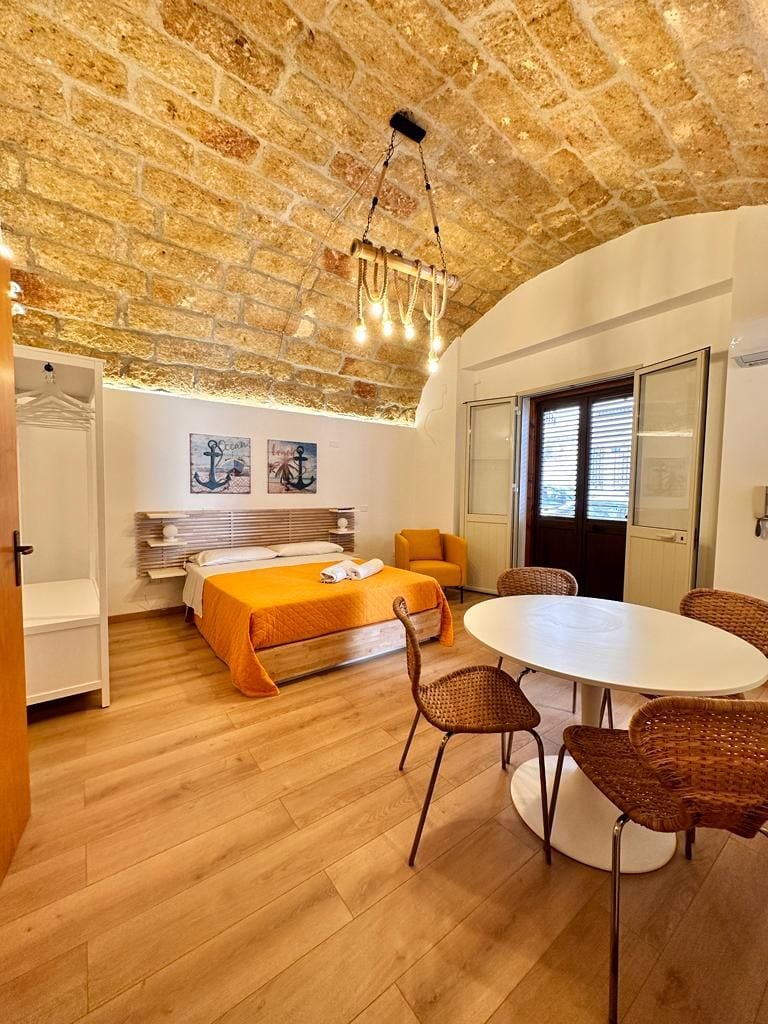 Is stiúideo te beirt é Studio Anatólio i gcroílár lár na staire in Castellammare del Golfo. Tá sé curtha ar bun go cúramach i stíl íostach agus Mheánmhuirí, agus tá timpeallacht ghalánta gheal ann. An chistin fheidhmiúil, an seomra folctha nua-aimseartha, agus balcóin óna bhfuil radhairc iontacha ar an trá. Osclaíonn an balcóin chuig radharc uathúil: an fharraige cúpla céim ar shiúl agus éirí na gréine a shoilsíonn an cósta go réidh, rud a thugann múscailt mhall agus barántúil.
