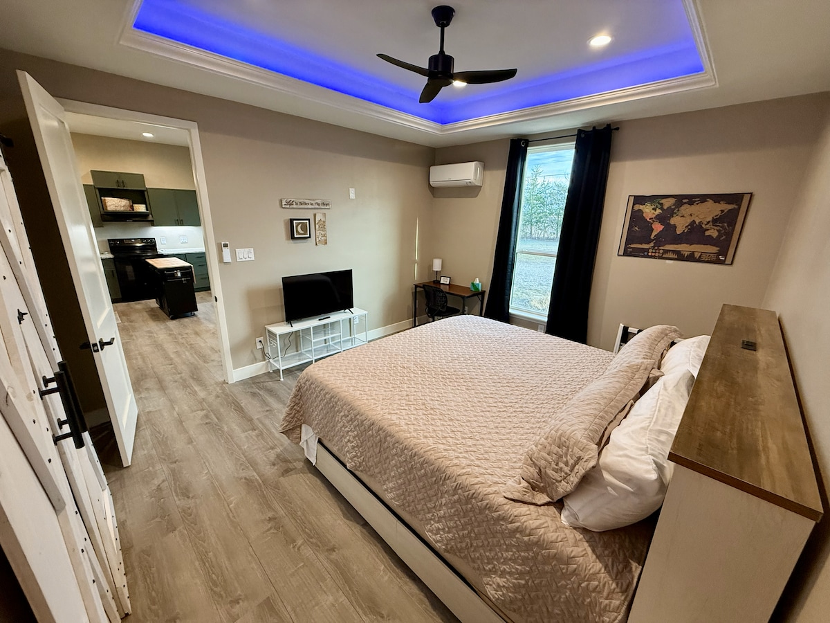 An Saoire Ghoirid Fhoirfe agus Fanacht Fada Lig do scíth sa svuít aíochta seo atá suite go lárnach ag The Connect ina bhfuil leaba bhanríona, leaba lae dhá dhuine, agus tocht aeir roghnach do cheathrar. Bain sult as cistinéad, folcadh iomlán, agus rochtain dhíreach ar an bpaitió tearmainn ina bhfuil cathaoireacha suaimhnis gréine, do theallach féin, agus saoráidí lasmuigh ina measc gríoscán, cluiche poill arbhair, galf diosca, agus áit bheag aclaíochta. Dhá nóiméad ar shiúl ó WinStar, tá an spás suaimhneach seo foirfe le haghaidh saoirí gearra, ceolchoirmeacha, agus fanachtaí suaimhneacha athluchtaithe