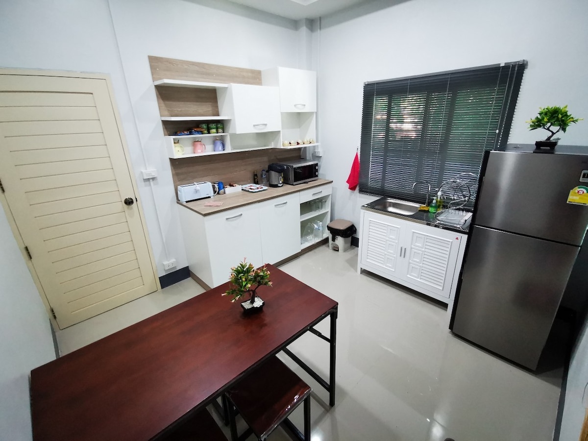 "Teach Kham Pui" Tá an teach seo te. Is é an smaoineamh ná go mbraithfeadh gach duine atá ar cuairt go bhfuil siad sa bhaile sa teach seo. 🏡 Tá an teach roinnte ina 3 sheomra leapa, 2 sheomra folctha, 1 seomra suite agus 1 chistin is féidir a úsáid le haghaidh cócaireachta agus paitió le gairdín beag taobh thiar den teach. Is féidir 2 charr a pháirceáil. Foirfe do ghrúpaí cairde, teaghlaigh, nó eagraíochtaí beaga ina bhfuil thart ar 6-9 mball. 🚶 Is taitneamhach an rud é siúl timpeall na cathrach. Laistigh de 300 méadar, gheobhaidh tú go leor áiteanna tábhachtacha in aice le Huay Kaempui, lena n-áirítear margadh úr 5 nóiméad ar shiúl. Cuireann “Huan Kham Pui” fáilte chroíúil romhat.