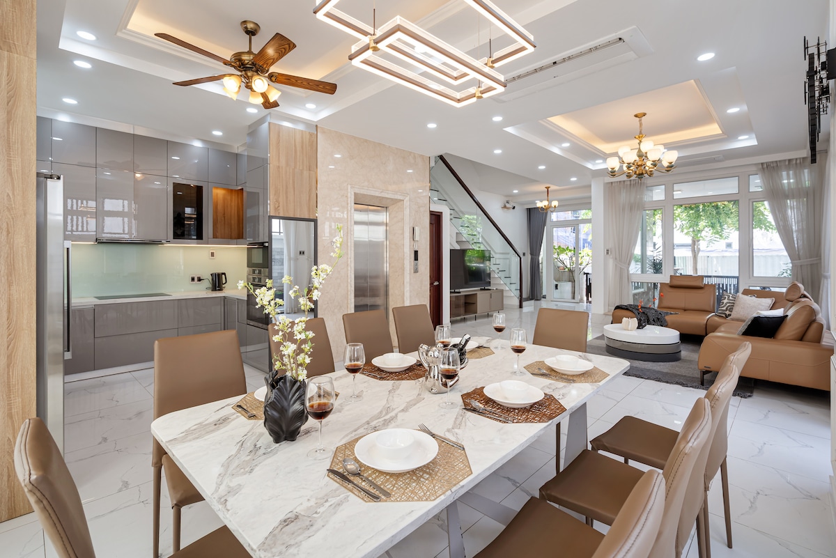 Chào mừng bạn đến với The Lux White Villa, biệt thự trắng sang trọng giữa lòng TP. Hồ Chí Minh, chỉ 10 phút đến Quận 1. Điểm nhấn nổi bật là hồ bơi trong nhà cực rộng, nơi bạn có thể bơi lội, thư giãn và tổ chức pool party riêng tư trong không gian sang chảnh như resort Villa gồm 9 phòng ngủ – 8 phòng tắm, phòng khách rộng, bếp hiện đại, cùng karaoke – bida – BBQ sân thượng view Landmark 81. The Lux White Villa là lựa chọn lý tưởng cho pool party, sinh nhật, team building,nghĩ dưỡng Gia đình