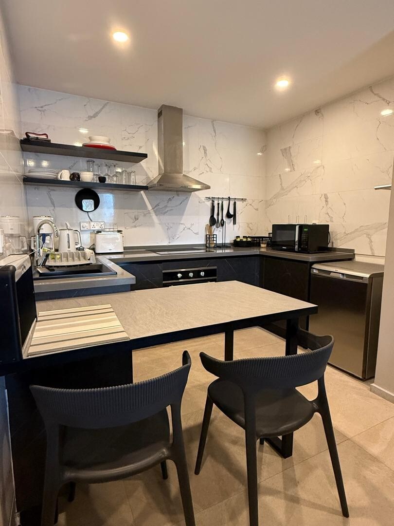 Árasán Afra - Chic sa tSeineagóim Árasán iontach 2 sheomra leapa 300m ón trá, maisithe i stíl Afro - chic le troscán déanta go háitiúil. In aice leis an ionad comhdhála agus na bialanna is fearr. Cistin lánfheistithe (micreathonnán, cuisneoir, Nespresso), AC, Netflix, snáithín ardluais, linn snámha, linn snámha kiddie, meaisín níocháin, gineadóir. Seomra folctha le tuáillí, seampú, glóthach chithfholcadáin. Slándáil 24/7, glanadh san áireamh. Caife, tae, uisce curtha ar fáil. Foirfe le haghaidh gnó nó fóillíochta, déan áirithint le haghaidh fanacht uathúil!