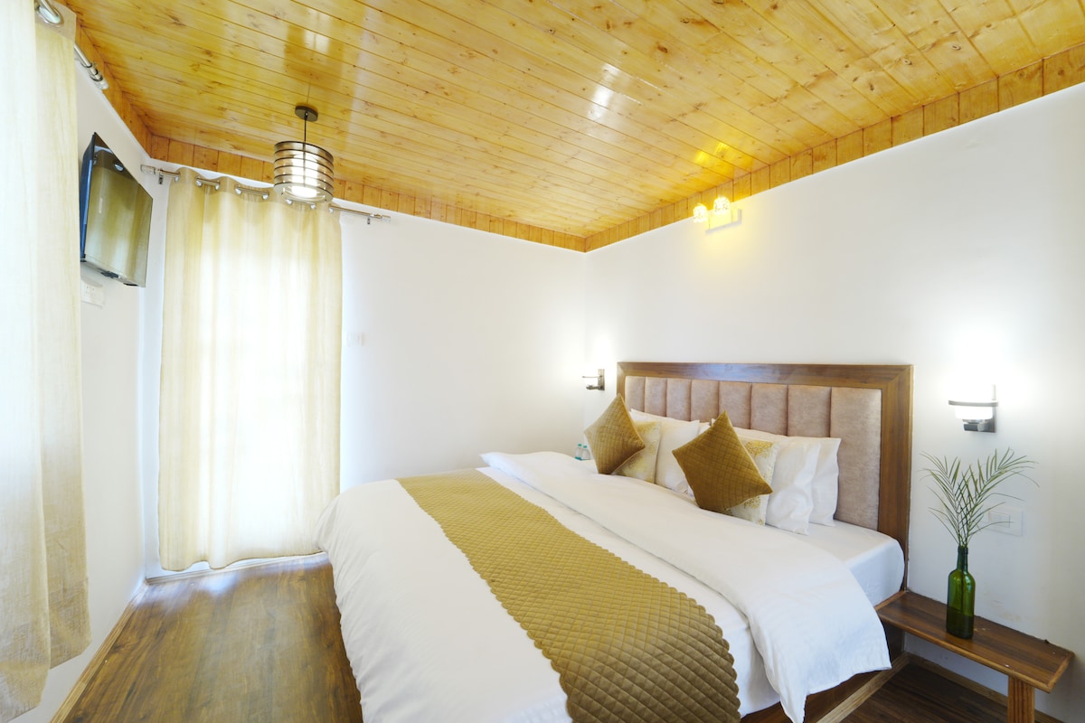 Fáilte go Aaram Baagh, tearmann draíochtúil atá suite i gcroílár stáisiún gleoite chnoic Shimla. Lonnaithe i lár an bhaile, cuireann ár dtithe cónaithe meascán iontach d'inrochtaineacht agus de shuaimhneas ar fáil. Tá na saoráidí riachtanacha go léir le feiceáil i seomraí cluthara dea - cheaptha in Aaram Baagh, rud a chinntíonn fanacht compordach speisialta. Tá éadaí leapa compordacha, rochtain Wi - Fi, agus radhairc iontacha den bhaile ar fáil i ngach seomra. Ina theannta sin, bainfidh tú taitneamh as radharc gairdín an tseomra leapa atá ag breathnú amach ar an mbaile.