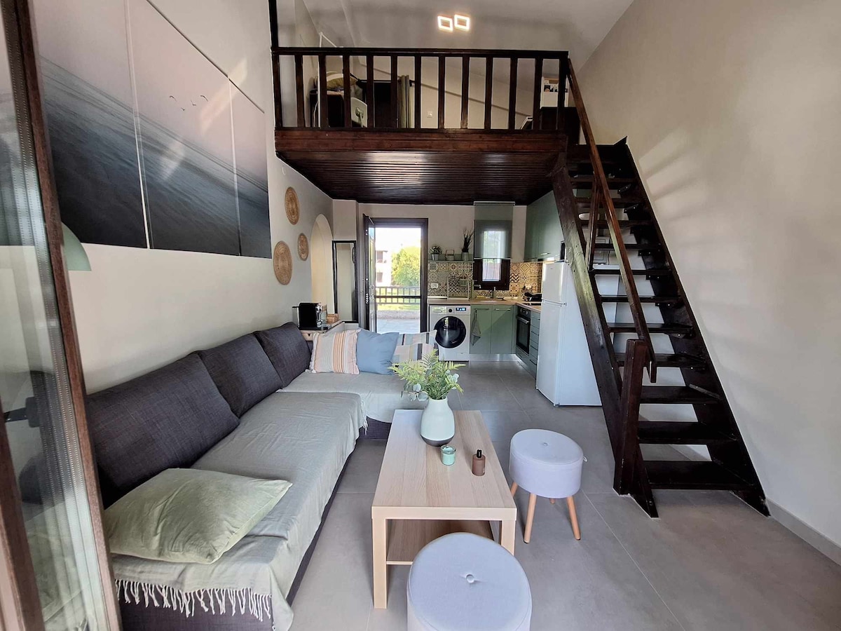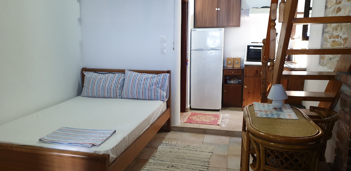 Stiúideo iontach - nóiméad amháin ó thrá chúlráideach I lár garrán olóige, tá an stiúideo príobháideach fairsing seo foirfe do laethanta saoire rómánsúil. Simplí ina stíl, soláthraíonn sé saoráidí iomlána agus ardán iontach ag breathnú amach ar an mbá. Suíomh foirfe chun taitneamh a bhaint as an oileán (tiomáint 7 nóiméad ón mbaile) le neart tránna agus tithe tábhairne gar do.