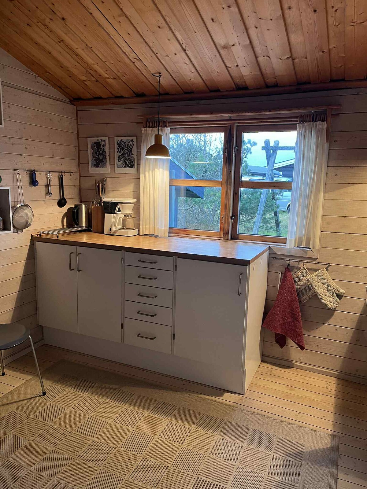 Tá an cábán i bhfolach i measc na bpéin agus bhí sé ar intinn acu deis a thabhairt do na haíonna dul i bhfolach óna saol gnóthach laethúil agus compord agus suaimhneas a lorg sa chábán agus i nádúr iontach Thy. Tá an cábán deartha agus tógtha ag ailtirí na Danmhairge, Spant Studio, a bhfuil duaiseanna buaite acu. Is í an aidhm ná filleadh ar bhunús cábáin saoire; le chéile le cairde agus leis an teaghlach i spás teolaí fáilteach a thugann daoine le chéile agus níos gaire don dúlra.