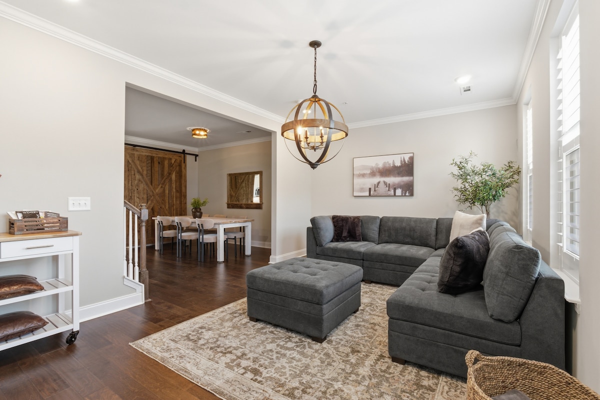 Bíonn rochtain phríobháideach ag aíonna trí dheic iomlán ina bhfuil radhairc áille ar chrainn. Tá an áit maisithe go gairmiúil i stíl nua-aimseartha tí feirme, agus tá an troscán agus na hoiriúintí go léir úrnua! Tá an réadmhaoin seo suite laistigh de 7 n-acra ar cheann de na bóithre is gleoite in Franklin, TN. Turas gairid 10 nóiméad go Lár na Cathrach Stairiúil Franklin, 7 nóiméad go Leipers Fork, ceann de na háiteanna is fearr i Tennessee, agus 3 nóiméad ar an mbóthar ó Southall Farms cáiliúil.