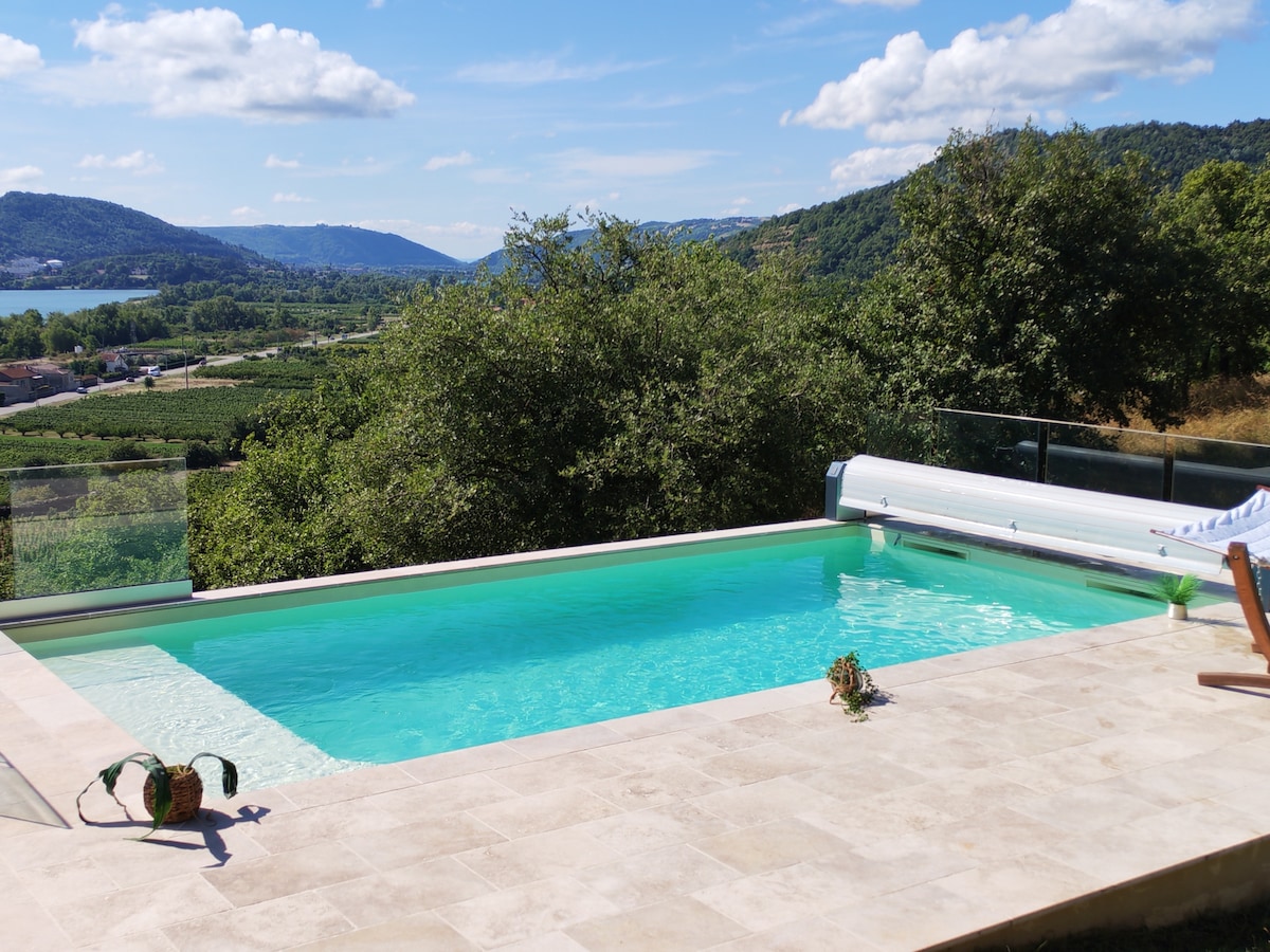 4* teach le linn snámha le radharc ar an Ardèche