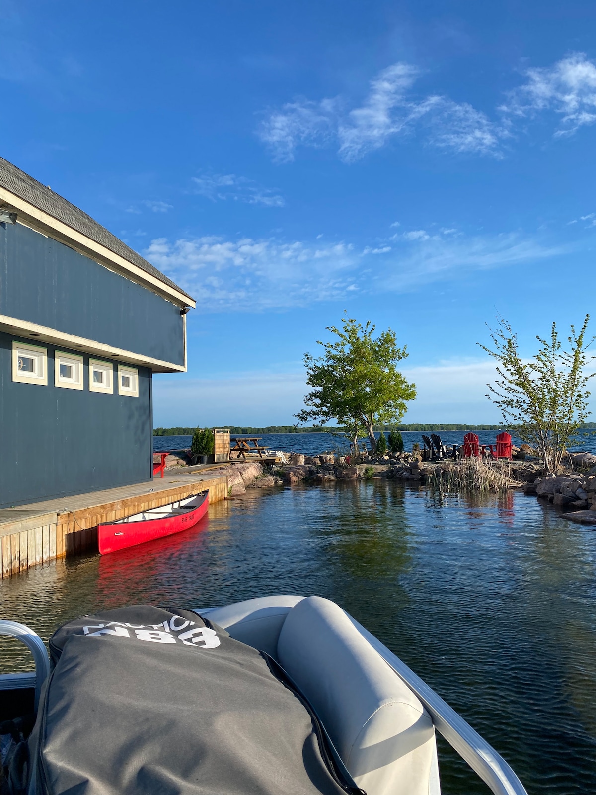 Radharcanna iontacha 360 céim ar Abhainn mhaorga St. Lawrence. Níl rochtain ar an teachín beag bídeach bunúsach seo ach ar bhád agus tá duga coincréite 80’ar fáil ann. Éirí agus solas na gréine dochreidte. Níl Wi - Fi ar bith ann ach seirbhís phóca den scoth. Tá teachín bunúsach ach tá na radhairc iontach. Is eispéireas uathúil é Oileán Scorpion i gcroílár na 1000 Oileán díreach soir ó Gananoque. Ar fáil Bealtaine - Meán Fómhair amháin. Le haghaidh tacsaí uisce, cuir teachtaireacht chugainn.