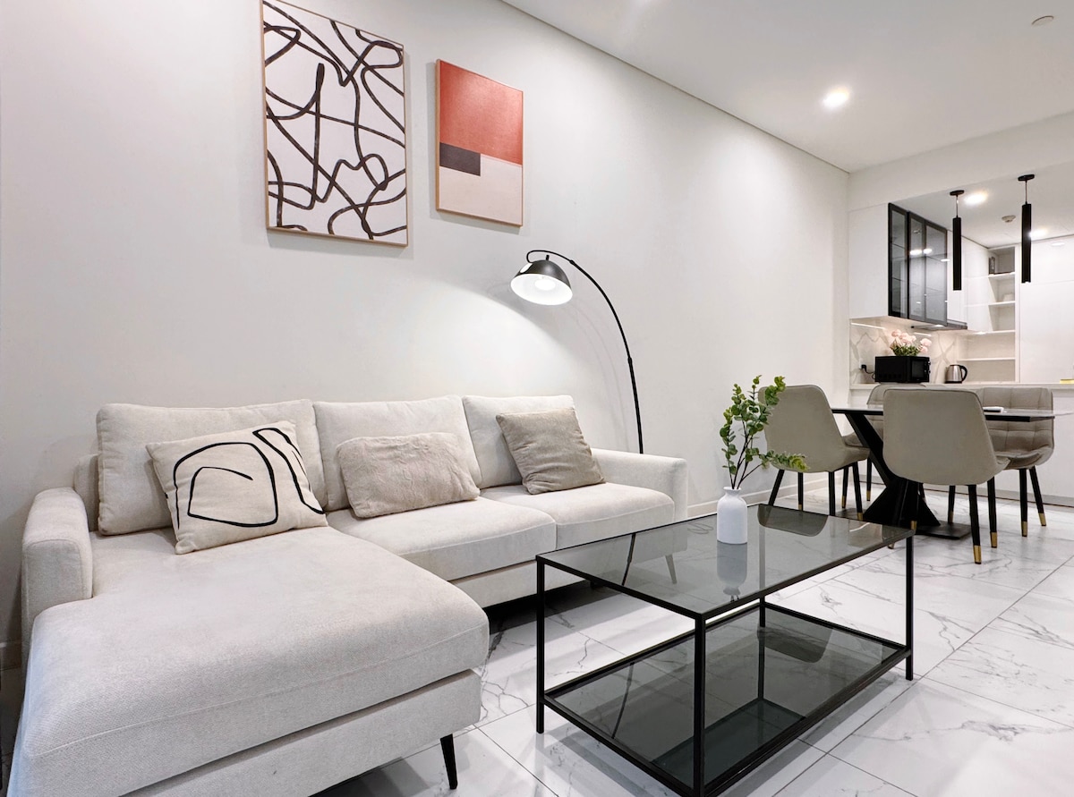 Bain sult as eispéireas galánta ag an áit seo atá suite go lárnach. Is é 78m2 an t - árasán 2 sheomra leapa, is é an 22ú hurlár an t - urlár is airde agus tá an radharc CBD is áille ag The Opera Thu Thiem. Tá an troscán infheistithe go maith agus tá sé thar a bheith ard - aicme Luxury 5* The Opera Residence by ChiHome - River View CBD District 1 - Level A2x.09, 78m2, 2 Room. The Opera Metropole Thu Thiem