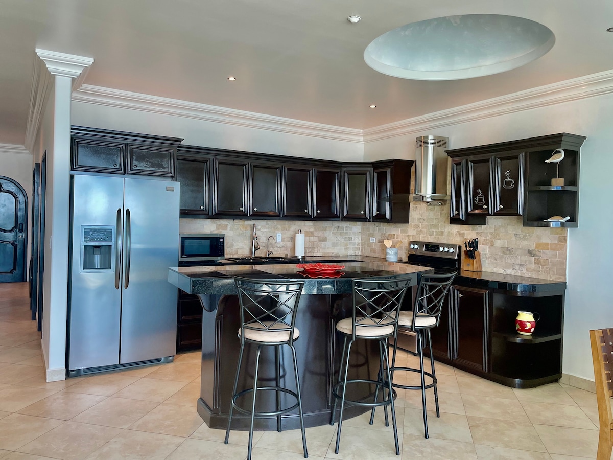 Lig do scíth ag an Villa Ocean - View seo in La Paloma, Níl ach tacsaí 5 nóiméad nó siúlóid 15 nóiméad go lár Rosarito agus Papas & Beoir. Bain sult as 3 sheomra leapa banríona, 3 sheomra folctha, 2 chithfholcadán, teilifíseán 72" HD, Netflix, Wi - Fi tapa, toilg leathair, téamh lárnach, agus gríoscán gualaigh. Scaoil le fuaim na dtonnta in ionad saoire geataithe le slándáil 24/7 - foirfe chun iniúchadh a dhéanamh ar Baja nó chun do scíth a ligean cois farraige. Compord, suíomh, agus charm ag fanacht!