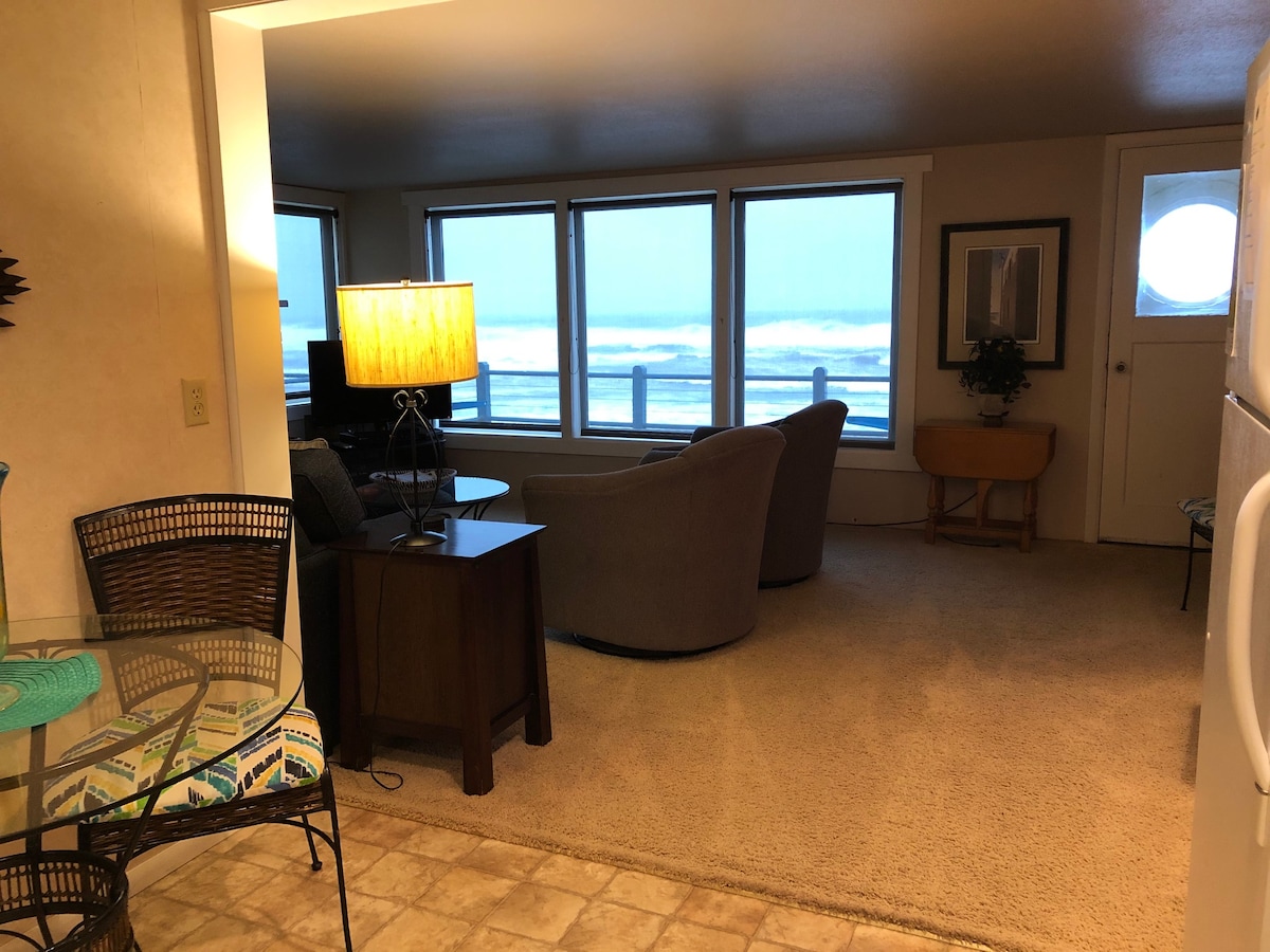 Téigh isteach in árasán álainn 2BR 2Bath cois farraige le rochtain dhíreach ar an trá agus ullmhaigh le bheith scuabtha de do chosa! Cuireann 🌊 sé an t - éalú foirfe ar fáil ón ngnáthshaol laethúil, agus iad go léir gar do go leor nithe is díol spéise agus sainchomharthaí nádúrtha. 🏞️ Déan iniúchadh ar Chósta maorga Oregon nó lig do scíth an lá ar shiúl agus tú ag déanamh iontais den aigéan agus d'fhuaim na dtonnta. 🏖️ 🛏️ 2 Sheomra Leapa Compordacha Maireachtáil Deartha🏠 Oscailte Cistin 🍳 Lánfheistithe 🌅 Deic le radharc Teilifís 📺 Chliste Wi - Fi🚀 Ardluais