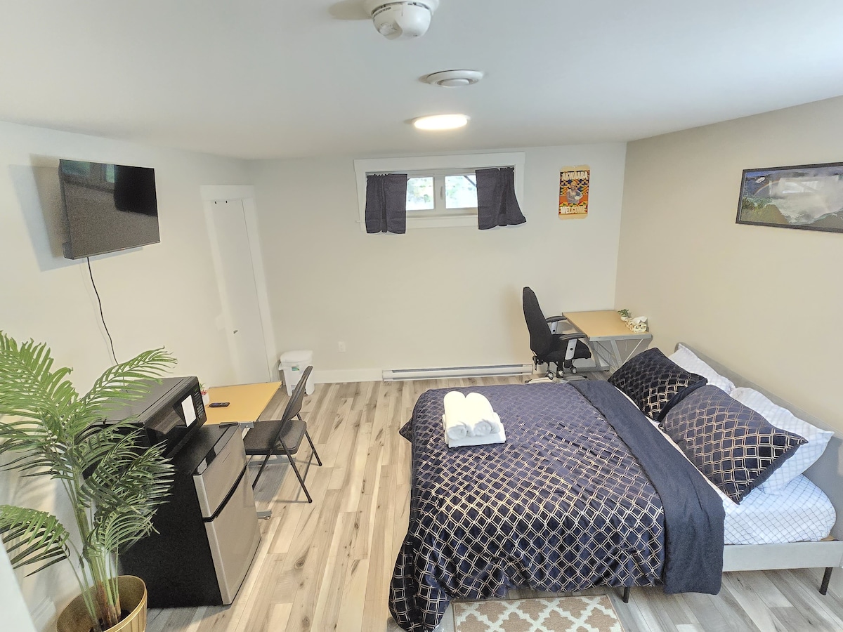 Scaoil isteach sa seomra íoslaigh príobháideach seo ina bhfuil a bhealach isteach ar leith féin le haghaidh príobháideachta iomláine. Fan ceangailte le Wi - Fi ardluais agus bain sult as oícheanta teolaí scannáin le rochtain ar Amazon Prime Video. Suite díreach nóiméad ó cheantar tráchtála fuinniúil le Sobeys, McDonald's, agus go leor roghanna eile - tá gach rud a theastaíonn uait in aice láimhe. An mian leat iniúchadh a dhéanamh ar an gcathair? Níl Downtown Halifax ach 20 go 25 nóiméad sa charr uait, rud a fhágann go bhfuil sé éasca an chuid is fearr den áisiúlacht agus den suaimhneas a bhlaiseadh.