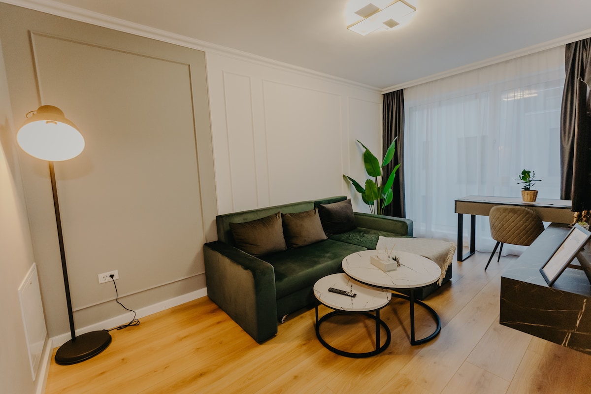 Fan i stiúideo galánta ina dtagann dearadh galánta le compord nua-aimseartha, suite i gceantar lárnach in Timișoara. Agus é faoi fhad siúil ó Union Square, ó Victory Square, ón Ardeaglais Cheartchreidmheach, chomh maith le bialanna, caiféanna agus músaeim den scoth, is é an bonn foirfe é chun an chathair a iniúchadh. Tá atmaisféar croíúil galánta sa spás atá deartha go cúramach, atmaisféar atá foirfe d'oícheanta suaimhneacha agus do thréimhsí fanachta táirgiúla araon. Meascán den scoth de stíl, compord agus suíomh.