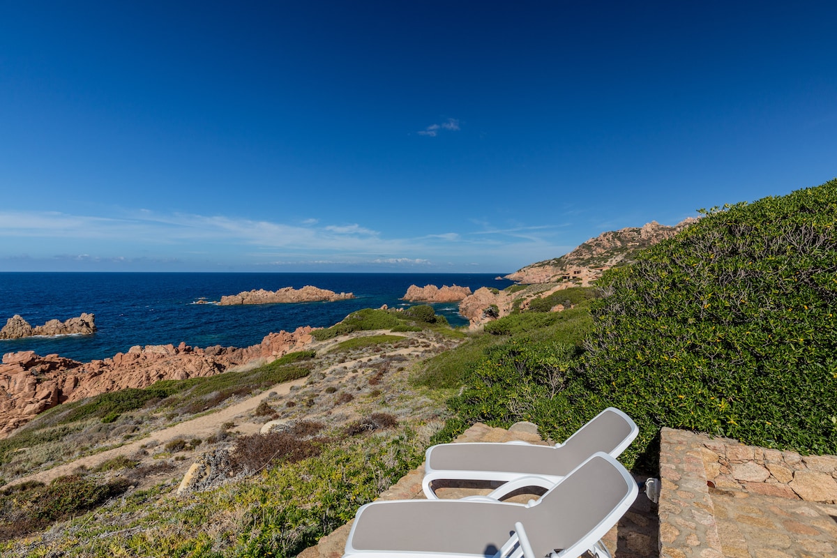 Agus é suite i gceann de na háiteanna is áille in Gallura agus sa tSairdín, agus é ag breathnú amach ar an bhfarraige agus ar Chaolas Bonifacio, tugann Villa Johnson an deis maireachtáil gach nóiméad den lá i ndlúth - theagmháil leis an bhfarraige agus taitneamh a bhaint as breacadh álainn agus luí na gréine agus tú ag ligean do scíth ar na trí ardán iontacha a thairgeann ár réadmhaoin. Suíomh uathúil agus ardleibhéil dóibh siúd a bhfuil príobháideacht iomlán agus teagmháil dhíreach leis an dúlra á lorg acu
