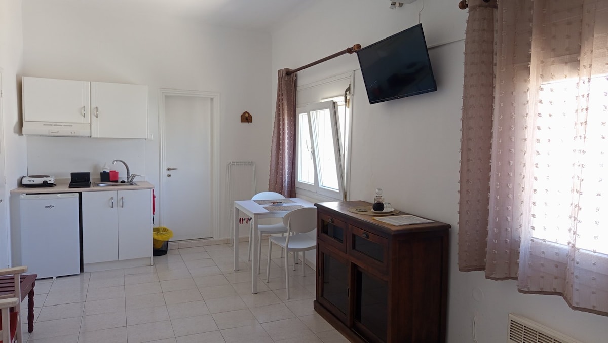 Árasán stiúideo ina bhfuil na saoráidí riachtanacha go léir agus ag an suíomh is fearr is féidir! Croílár bhaile Mykonos ach ar bhealach ciúin! Níl i ngach díol spéise mór (muilte gaoithe, Veinéis bheag, Seanphort), gach riachtanas (margaí, busanna, tacsaithe, ATManna) agus an spraoi ar fad (bialanna, beáir luí na gréine, clubanna oíche agus trá bheag an bhaile) ach cúpla nóiméad siúil!!!