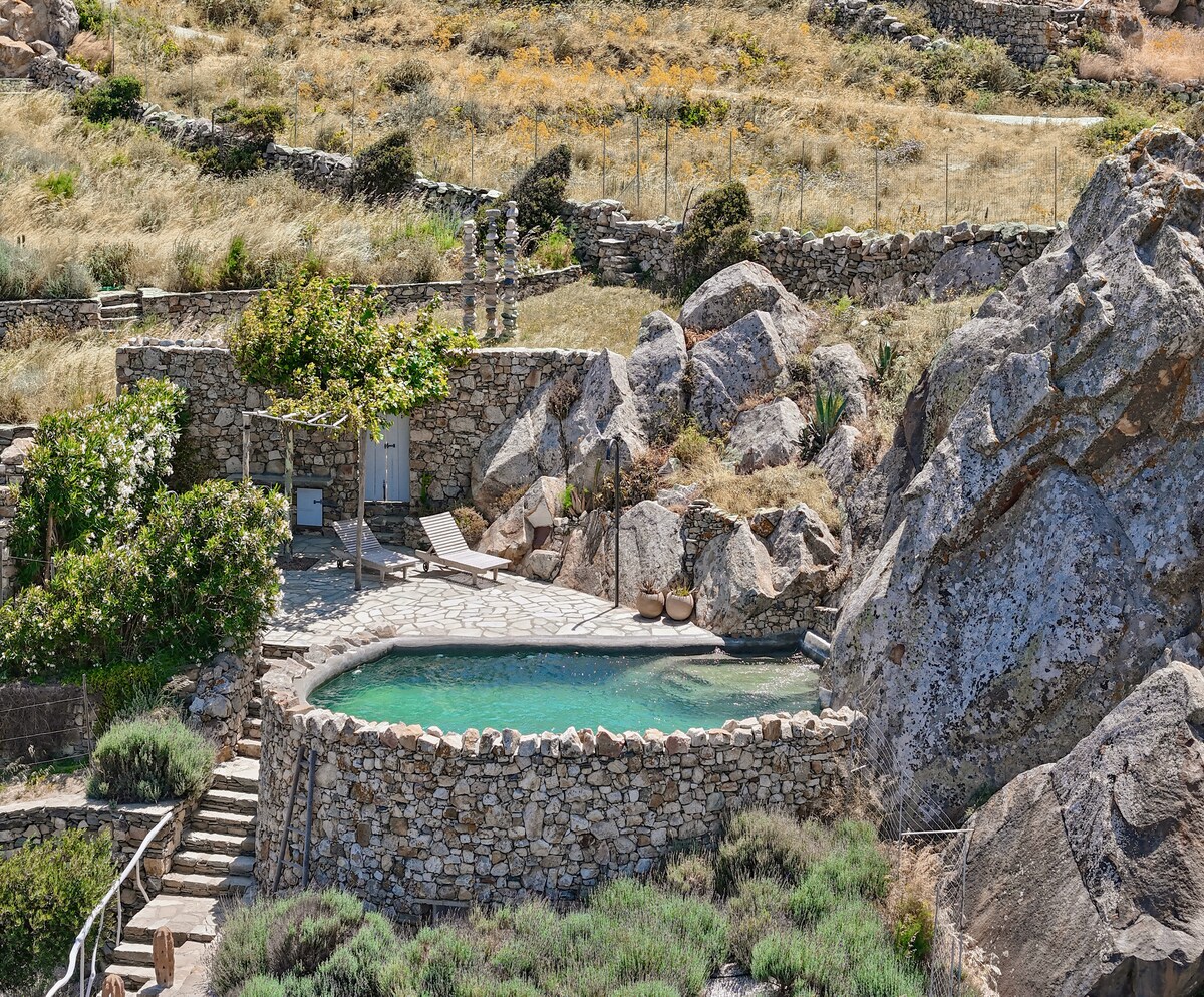 Teach agus gairdíní stairiúla atá athchóirithe go hálainn i suíomh iontach ar oileán. 10-15 nóiméad ó thránna den scoth agus ón mbaile agus ón gcalafort. Suaimhneach le stíl eisceachtúil, agus comhcheangal idir compord agus áiseanna iontacha. @xinarahouse Paris Vogue: 'an áit fanachta is áille ar Tinos'