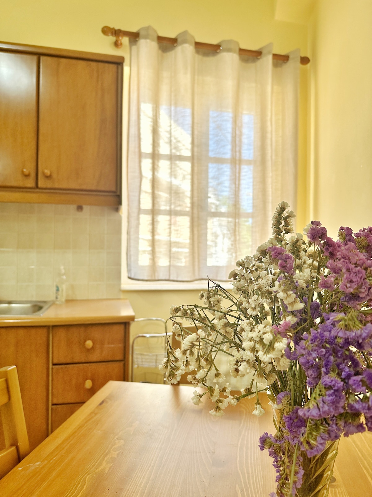 Tá an t - árasán fairsing Margarita atá feistithe go hiomlán ag fanacht leat chun amanna scíthe agus scíthe a thairiscint duit, in aice le lár na cathrach. Tá sé suite 10' siúl ó chalafort Tinos, 6' ó thrá Agios Fokas agus níl ach siúlóid 5'ó lár na cathrach. Tá sé leathbhunaithe agus is féidir le suas le 4 aoi freastal air mar go bhfuil leaba dhúbailte agus leaba thoilg ann.