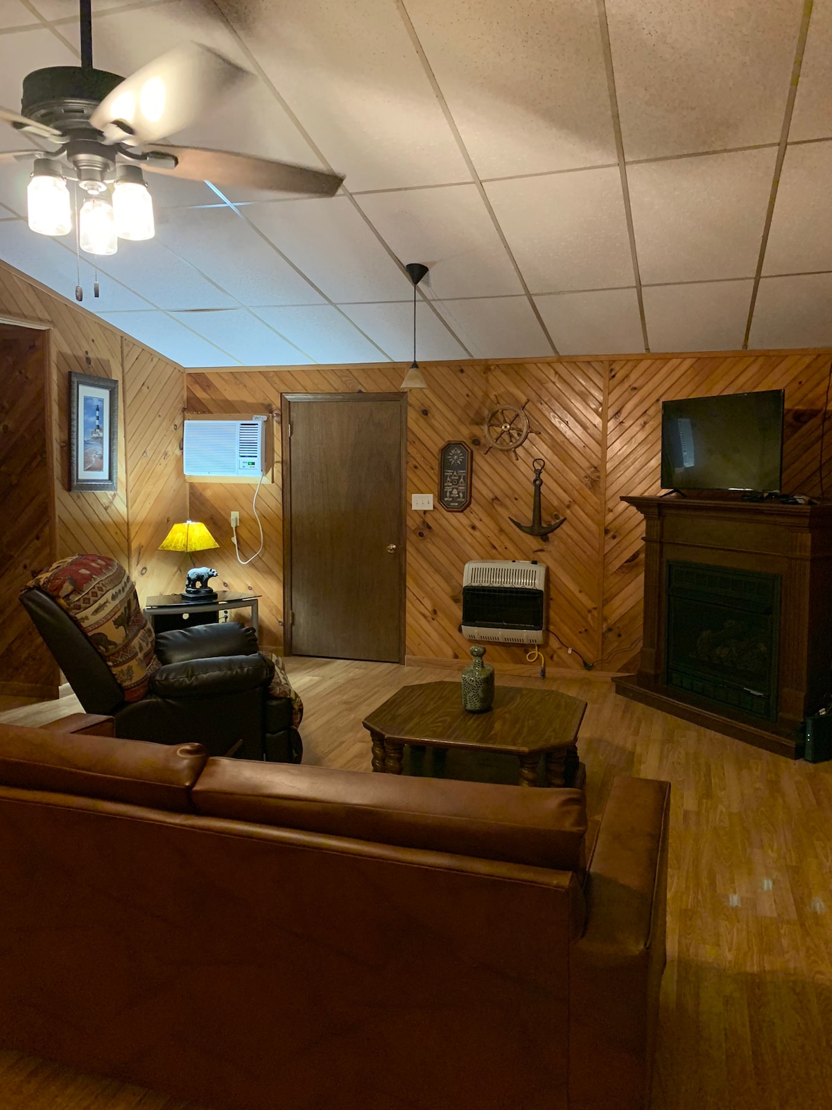 Suite trasna na sráide ó Aqua Safe Harbor, is cábán 2 sheomra folctha é Scotties ina bhfuil seomra bónais. 2 leaba rímhéide móide futon. 2 sheomra folctha iomlána, clós deas chun do pheataí a shiúl, póirse cúil clúdaithe ag breathnú amach ar an gcuan. Tá TWRA Stateline Boat Ramp nóiméad ar shiúl. Is féidir leat báid agus duillíní a fháil ar cíos ag an Harbor. Ith ag Aqua Grill suite ar dheis ar an uisce ag an gCuan. Níl na bialanna agus an tsiopadóireacht go léir ach 5 nóiméad ón gcábán. Oiriúnach do pheataí le táille.