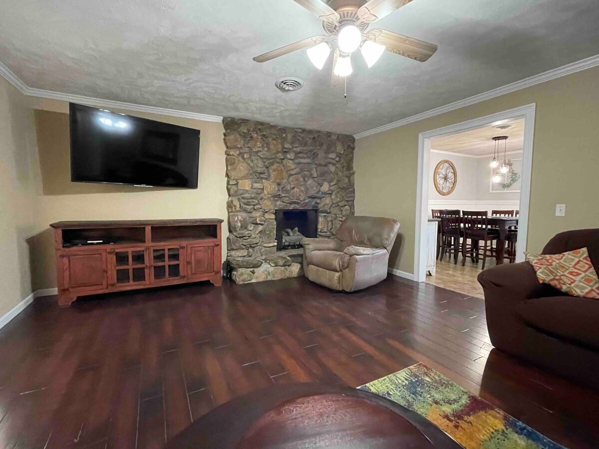 CABIN@GOAT ISLAND LOT MÓR le haghaidh páirceála BÁD & rochtain éasca ar nasc. Tá sé trasna an locha le cuma agus mothú Gatlinburg. Tá an cábán seo foirfe cé acu an turas iascaireachta le cairde, teacht le chéile saoire nó scíth a ligean leis an teaghlach ar fad. Tá sé an-fhairsing le seomra cluichí cosúil le beár, TEILBHEARD CLUICHE agus teilifís i ngach seomra, tobán scaird. Lig do scíth ar an deic le gríoscán gáis, cuisneoir, reoiteoir domhain, gaothrán, teilifís, suíocháin mhóra, agus teallach. Cúil cispheile, cluichí, srl. 1 mhíle go dtí an rampa báid MÁLAÍ OIGHIR SAOR IN AISCE, IARR ROIMH THEACHT