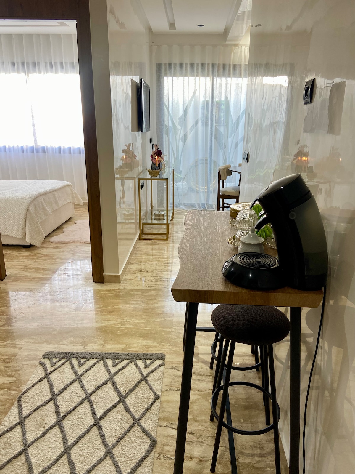 ✨ Bain sult as ár stiúideo nua - aimseartha, compordach agus sómasach, atá foirfe do lánúineacha💑, do chairde 👭 nó do thaistealaithe gnó. Suíomh 🌟 iontach: Stiúideo rómánsúil i gcroílár Burgúine Casablanca, gar do Hassan 2 Mosque,Marina , Saqala , Marjane... 🛋 Spás Compordach: Seomra suí geal ina bhfuil paitió, cistin Mheiriceánach fheistithe, seomra leapa ina bhfuil ardán álainn. ❤️ Foirfe do Lánúineacha: Fanacht pearsanta teolaí, Wi - Fi tapa agus aerchóiriú, atá oiriúnach do chuimhneacháin 💕