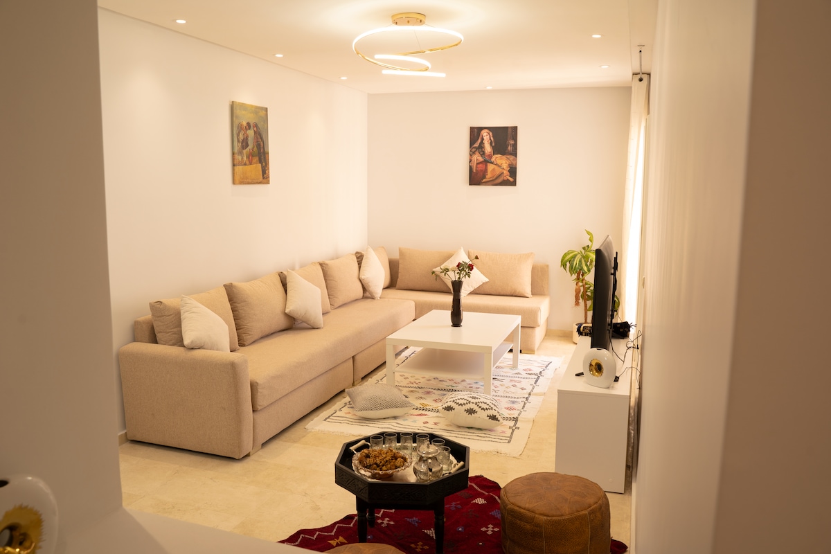 Fáilte go dtí m'árasán ciúin, atá suite in Casablanca. Dearadh an spás 65 m² seo chun suíomh croíúil fáilteach a thairiscint duit; Tá cistin agus na huirlisí riachtanacha go léir, cuisneoir, oigheann, Netflix, Amazon Prime, IPTV, Páirceáil Saor in Aisce, chomh maith le seomra suí compordach ina bhfuil tolg fairsing. Miontuairiscí ó stadanna bus,ollmhargaí, bialanna, caiféanna, siopaí agus an trá. Ná caill an deis fanacht san árasán ciúin seo,