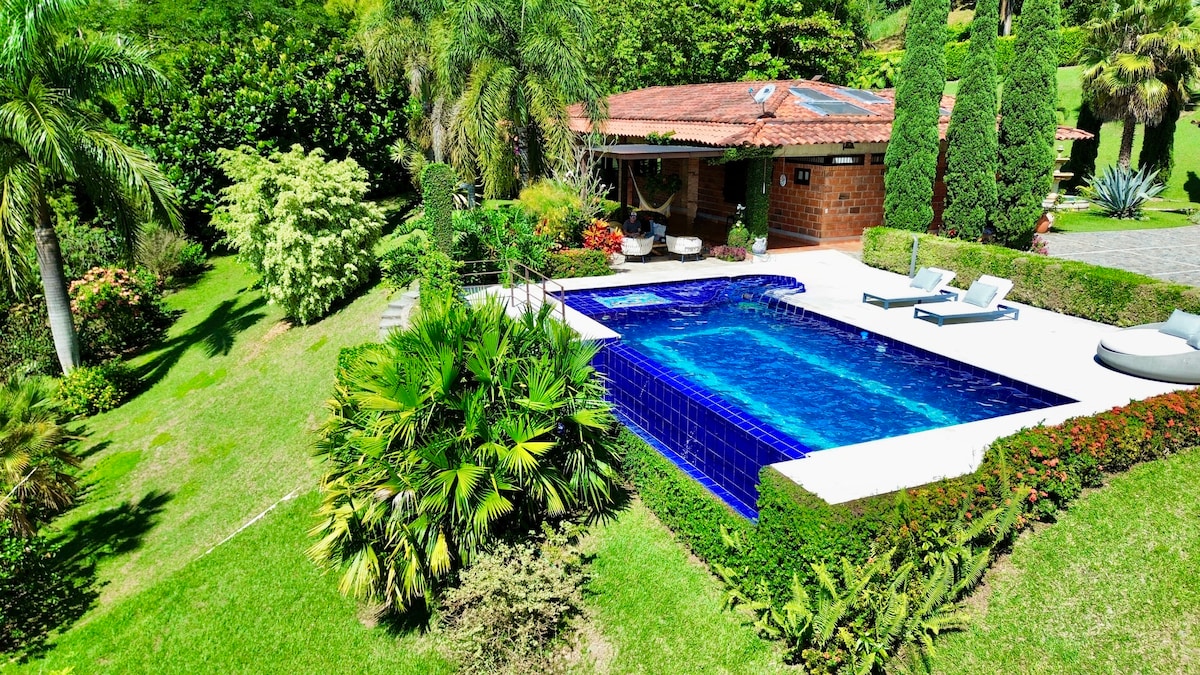 Enjoy the incomparably green landscape south of Medellin. Observe dozens of bird species directly from the large terrace. Afterwards, a refreshing swim in the garden pool? At 1300 meters above sea level, we have always sprin climate. The finca has two apartments. You have a completely furnished apartment all to yourself: a large living room with an open kitchen. One bedroom with bathroom. Large window fronts. All rooms have terrace access. Enjoy our sauna. starlink wifi +netflix