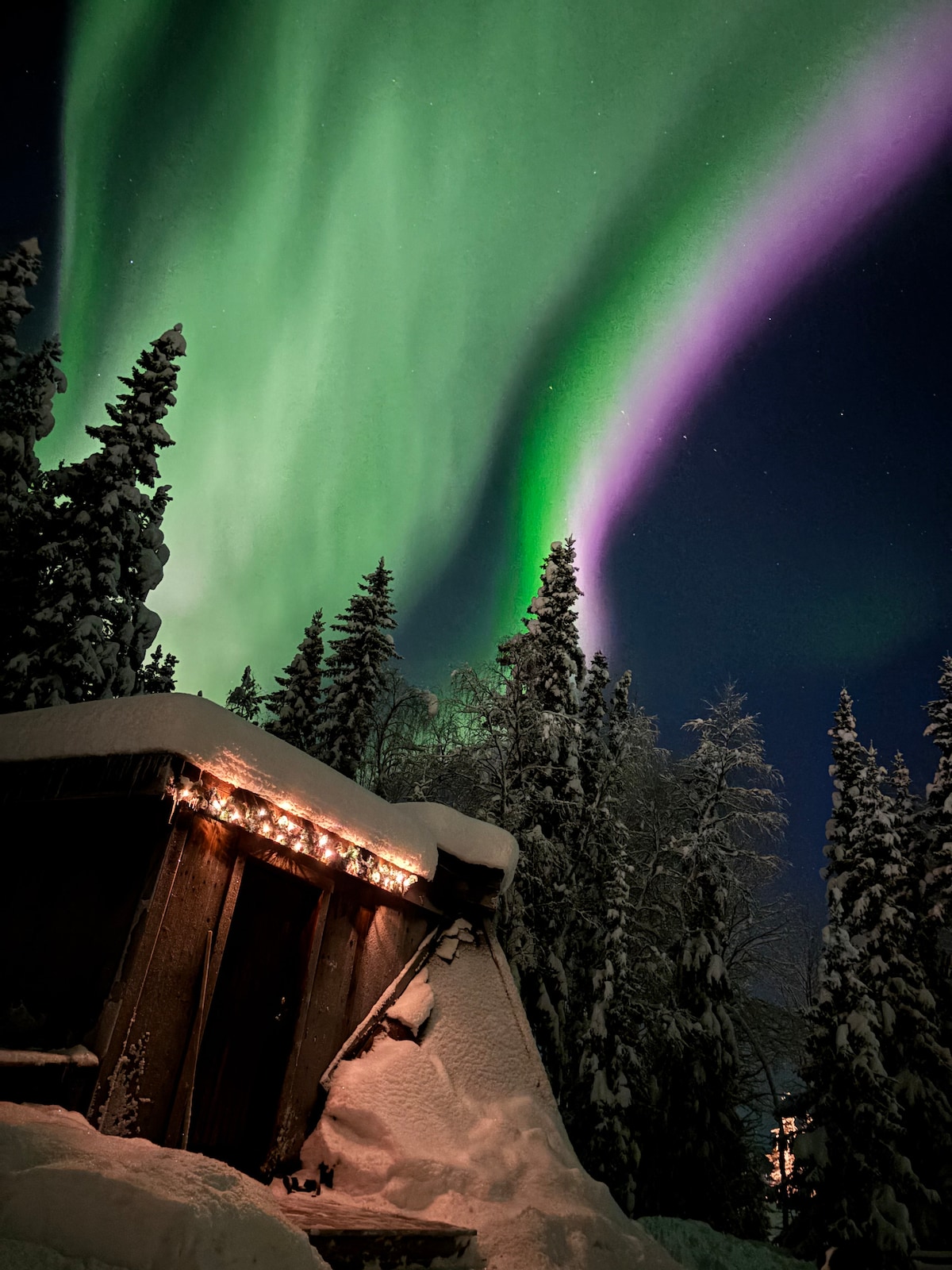 Codail faoi na réaltaí agus na soilse aurora damhsa sa chón neamhchoitianta uathúil seo! Sa chuall i rith an lae lenár réinfhianna cairdiúla (buail le chéile agus beannaigh/beathú san áireamh i d'fhanacht!) agus tar éis lá fada amuigh sa bhfuacht, glac am amuigh inár sabhna traidisiúnta adhmaid. Rómánsúil, speisialta agus cinnte ar cheann de chineál maireachtála!