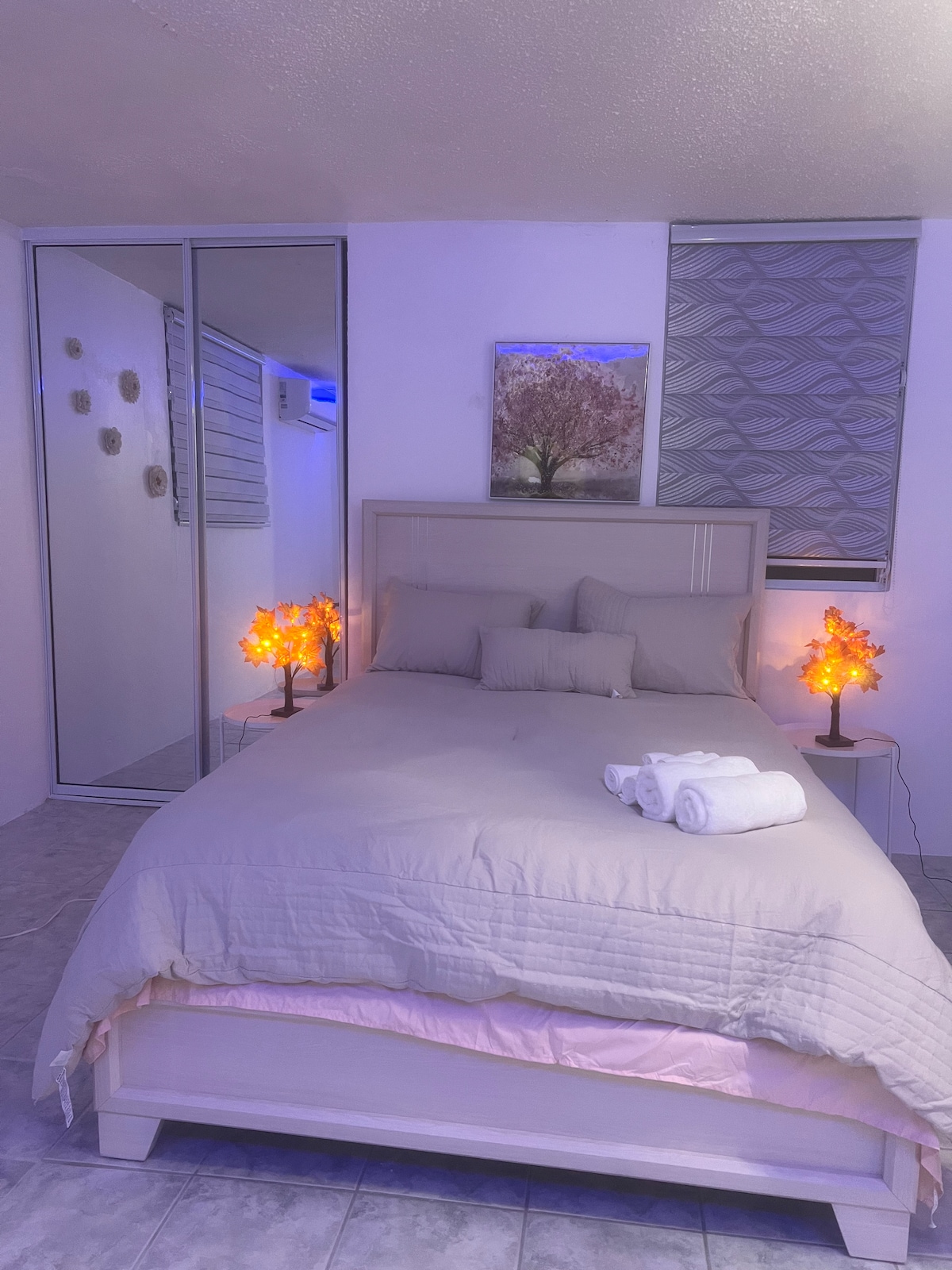 Árasán compordach lárnach le seomra leapa amháin le A/C, seomra folctha amháin, cistin iomlán feistithe agus lochtán deas le ámóg chun do scíth a ligean. Wi - Fi, agus Teilifís Cábla. Lonnaithe i Levittown PR. Nóiméid ar shiúl ó thrá Punta Salinas, 10 nóiméad ó Bacardí Tour, 20 nóiméad ó Old San Juan, agus Plaza Las Americas Mall, 25 nóiméad ó Luis Muñoz Marin Airport agus ionad siopadóireachta San Juan. Fad siúil ó bhialanna, caifitéire, Walgreen , CVS, agus ollmhargadh.