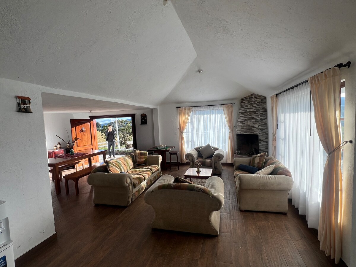 Un refugio cálido y moderno en medio de montañas, de los paramos andinos , rodeado de naturaleza, flores y vistas espectaculares. Esta casa de diseño rústico-industrial combina grandes ventanales, muros de ladrillo y techos de madera para ofrecer una experiencia acogedora y luminosa. Ideal para desconectar, descansar y disfrutar de atardeceres únicos desde la sala o la comodidad de la habitación. Cada rincón ha sido pensado para que te sientas en paz, inspirado y en conexión con el entorno.