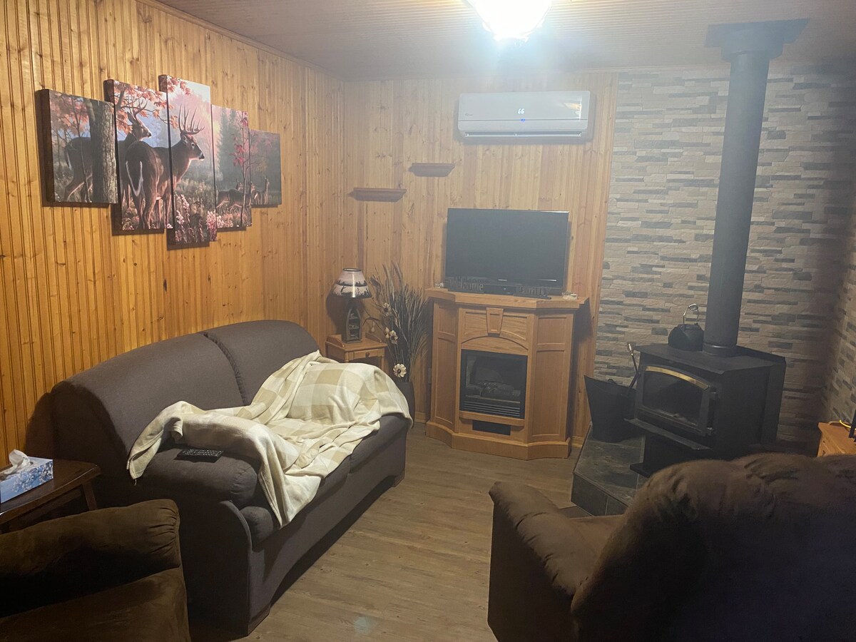 Ná déan dearmad ar d'imní sa saoire ghearr fhairsing shuaimhneach seo atá ag breathnú amach ar Abhainn Tobique. Déanann an teach suaimhneach 3 sheomra leapa/3 sheomra folctha seo éalú foirfe don teaghlach nó do ghrúpa cairde. Tá 9 nduine ina gcodladh le coincheap oscailte ina gcónaí, bia agus cistin atá deartha chun go mbeidh aíonna ábalta a scíth a ligean leis na saoráidí compoird go léir. Ceithre shéasúr atá sa phríomhshuíomh seo le snámh/cadhcáil, agus na conairí NB ATV/mótar sneachta. Siopa áise ina bhfuil stoc maith in aice láimhe, agus gan ach 10 nóiméad sa charr go dtí an baile is gaire dó