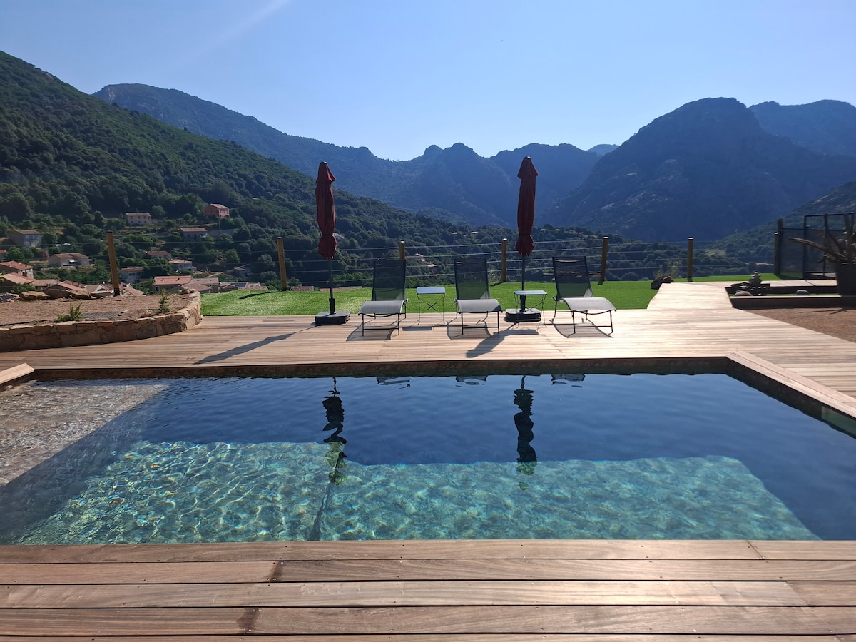 Maison traditionnelle corse inspirée des bergeries anciennes en pierre et bois. Confort moderne et piscine chauffée au coeur du maquis. Calme, vue montagne. Ce « Caseddu » de 40 m2 se compose d’une pièce à vivre avec coin cuisine, salon et cheminée et d'une chambre avec salle d’eau et toilettes séparées. Doté d’un équipement discret, il apporte tout le confort moderne nécessaire. A l’extérieur, terrasse bois et piscine chauffée (10 m2) offrent une vue imprenable sur la montagne.