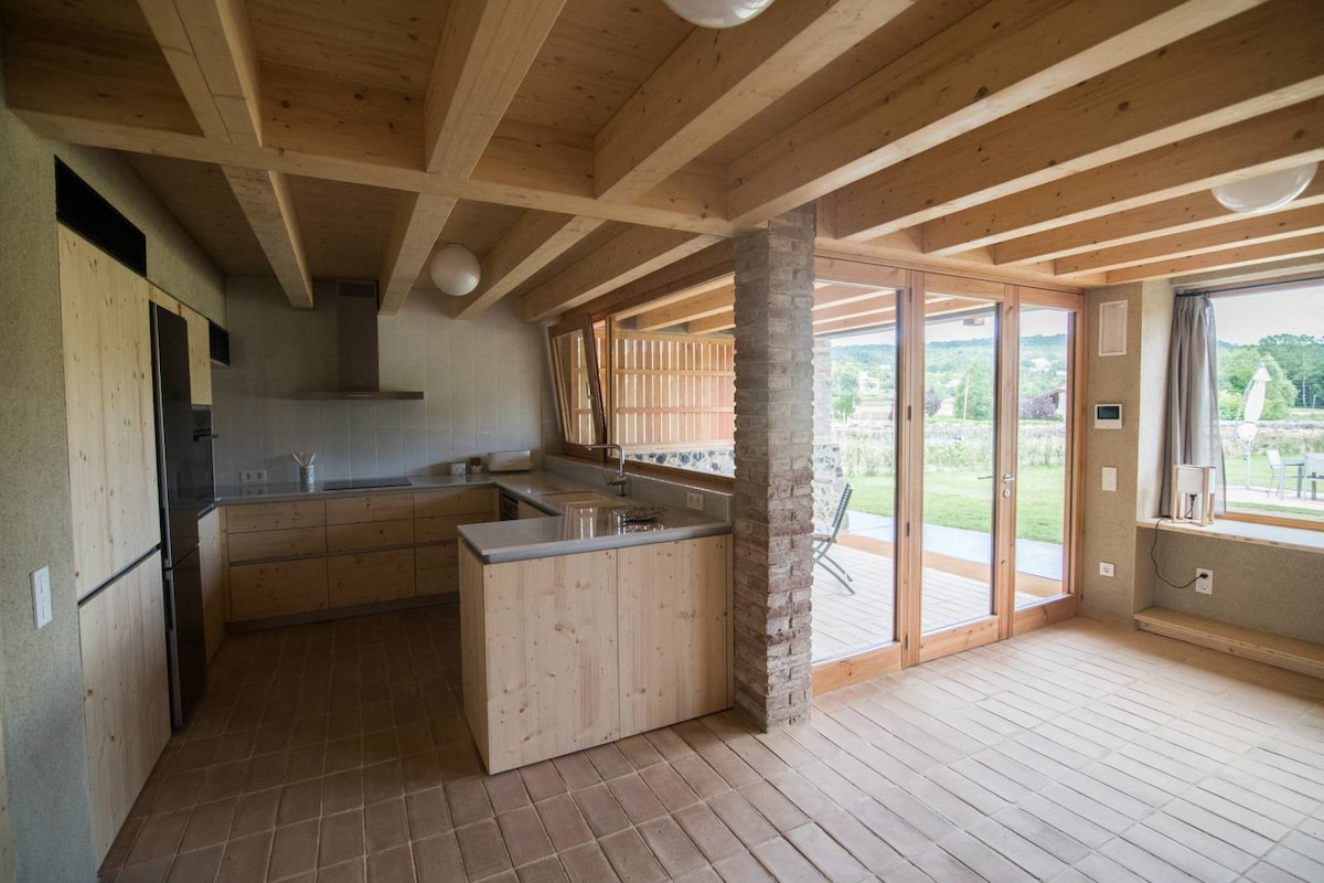 Tá seomra suí sa scioból ina bhfuil cistin dhubh, seomra leapa ina bhfuil leaba dhúbailte, lochta le dhá leaba agus leaba thoilg sa seomra suí. Tá cithfholcadán dúbailte ann freisin le fuinneog ionas gur féidir leat sásamh a bhaint as an dúlra agus tú ag cithfholcadh. Teallach, linn snámha, agus abhainn. Agus timpeallacht le coimpléasc monumhach ina bhfuil séipéal Rómhánúil le caoineog, reilig nua - aoiseach agus sráidbhaile na hIbéire 5 nóiméad ar shiúl. Iontach! 5 nóiméad ó bhialann tuaithe agus 10 nóiméad ón sráidbhaile/cathair.