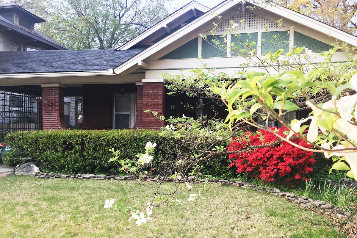 Peaceful guest house with central heat and air, close to everything and no cleaning list! Enjoy driveway parking and complimentary snacks in our comfortable space full of vintage furniture and books. Our historic neighborhood is located blocks from the highway, 7 minutes from downtown, 5 minutes from midtown's best restaurants and shops, & 12 minutes from Graceland and the airport. Explore Memphis and rest in our charming cottage! A full size second bed is available by request.