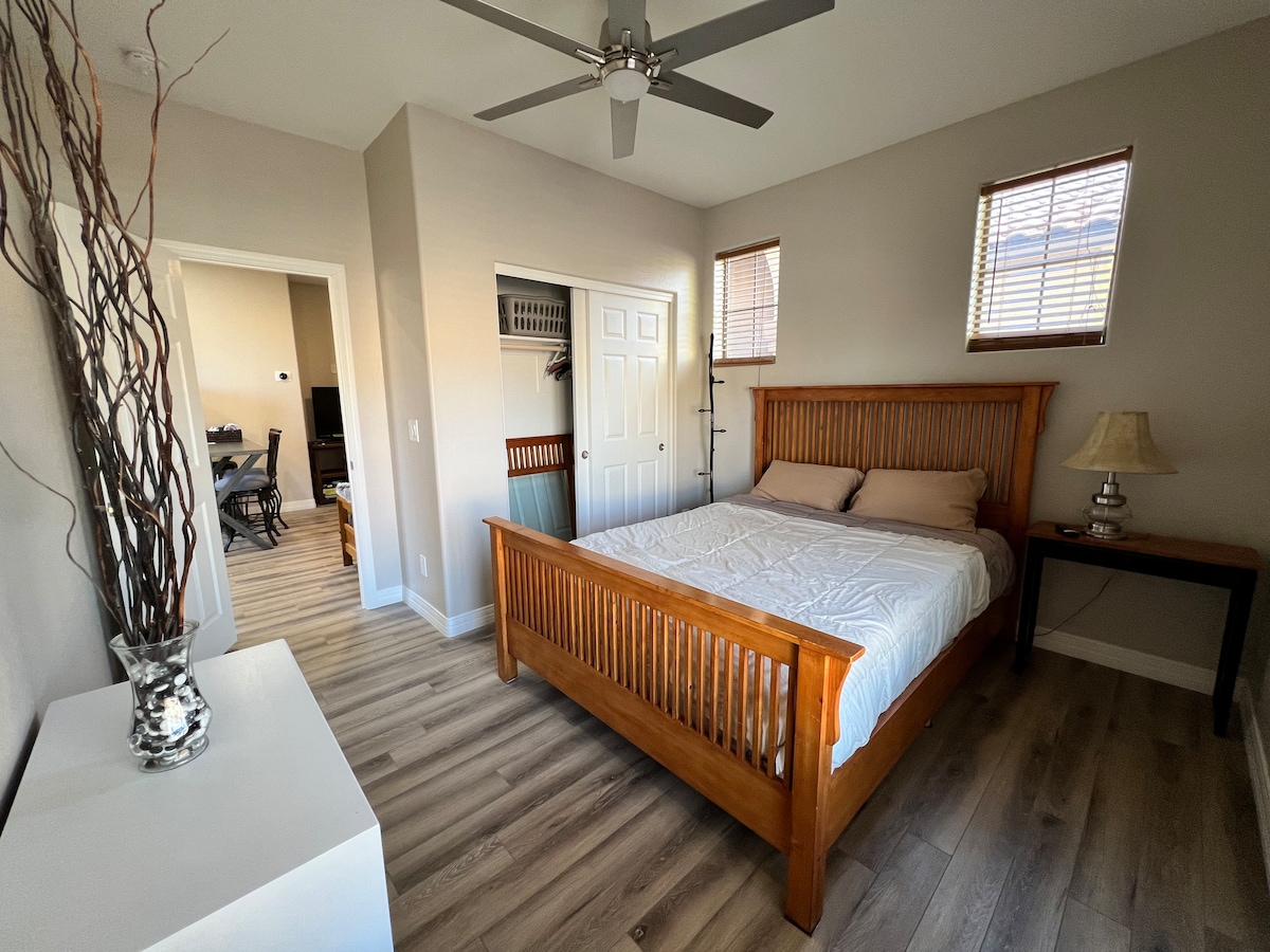 Kick back and relax in this cozy, stylish one-bedroom suite—perfect for a quick getaway or a productive business trip. The suite is attached to the main home and located in a newly built community where daytime construction is ongoing. You may experience some noise during the day, as well as normal household sounds from the attached home, including young children. To ensure a pleasant stay for everyone, we kindly ask guests to observe quiet hours from 10:00 PM to 7:00AM.
