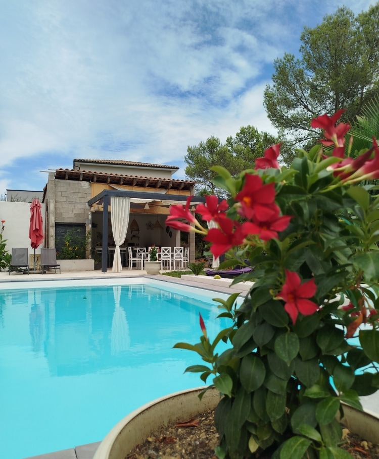 Árasán 6 dhuine sa teach. Linn snámha i ngairdín Anduze