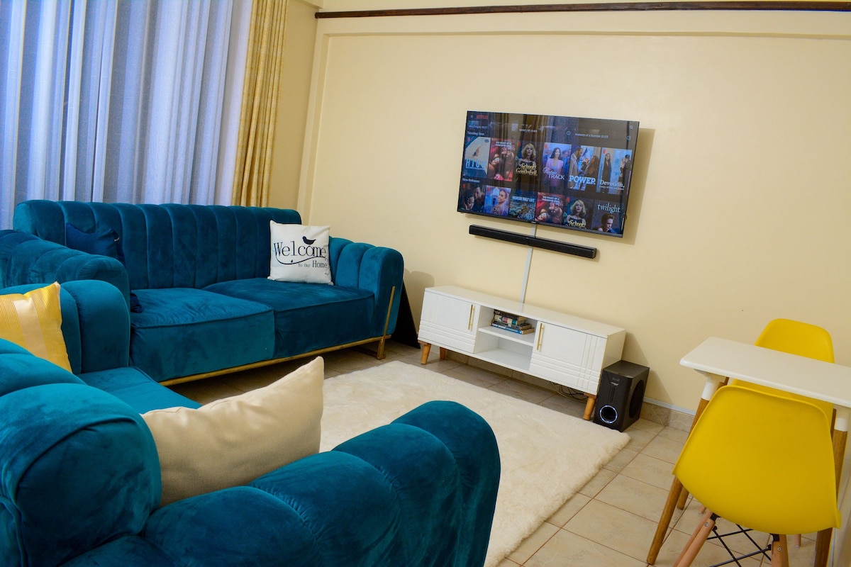 Enjoy your stay in this cozy, newly furnished two bedroom apartment. This Suite is centrally located within Bungoma, a short drive from CBD. Amenities: ✅ Calm & ideal for long & short stays ✅ wifi internet. ✅ Free secure parking and 24 hour security ✅ Smart TV ✅ Fully Equipped openKitchenette. ✅ Master Bedroom with walkin closets ✅ Balcony with a seating area. ✅ Rooftop view for calm surroundings. ✅ Nearby Supermarkets (Khetias,)