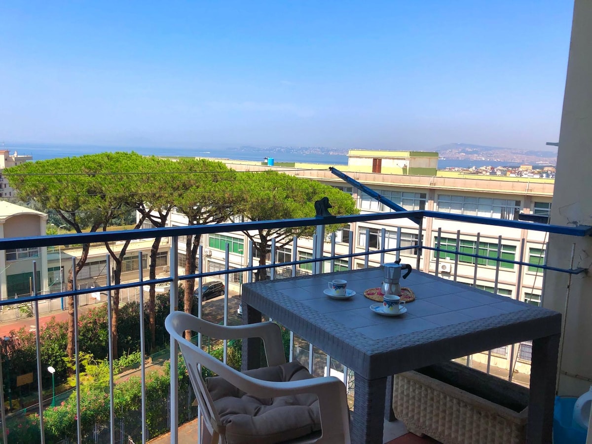 Splendido appartamento sul mare con vista sul golfo di Napoli, di tutti i comfort. Quarto piano, vista mare e Vesuvio, 6 posti letti, molto arioso e soleggiato, aria condizionata, tv in ogni stanza. Si parcheggia gratuitamente in strada, nelle strisce blue, dal mese di ottobre al mese di maggio in strada, da giugno in poi, però, fino alla fine di settembre si paga il pedaggio ad € 5,00 al giorno.