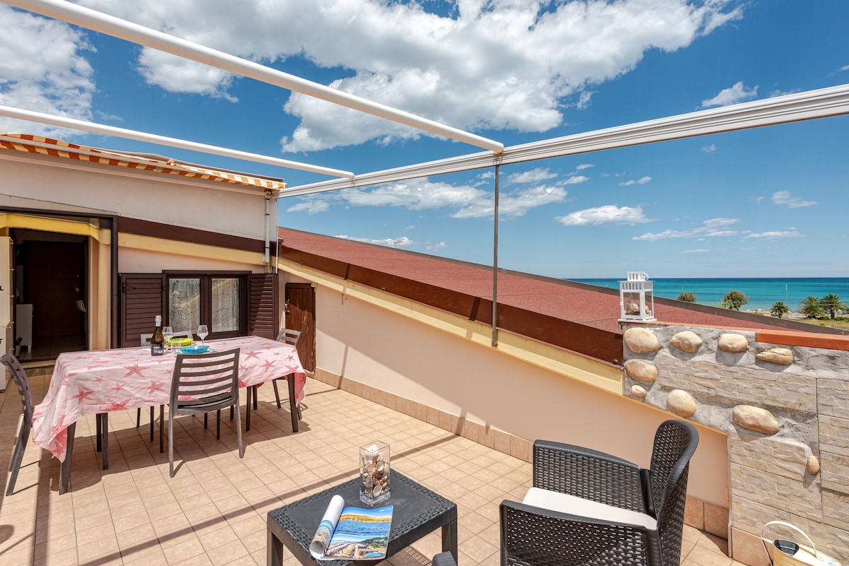 Árasán lómhar galánta le radhairc iontacha ar Mhuir Aidriad ag 0 méadar ón bhfarraige. Suite ar an séú hurlár d'fhoirgneamh nua - thógtha atá feistithe le gach compord. Tá na radhairc go léir ar an bhfarraige ionas gur féidir leat taitneamh a bhaint as radharc uathúil. Is éard atá sa teach seomra suí, seomra dúbailte, seomra leapa bunc, leaba thoilg, seomra folctha ina bhfuil ciúb cithfholcadáin agus cistin. Soláthraithe le foireann mhór earraí cócaireachta, plátaí freastail agus sceanra. Meaisín níocháin agus teilifís. BALCÓIN taobh amuigh le doirteal.