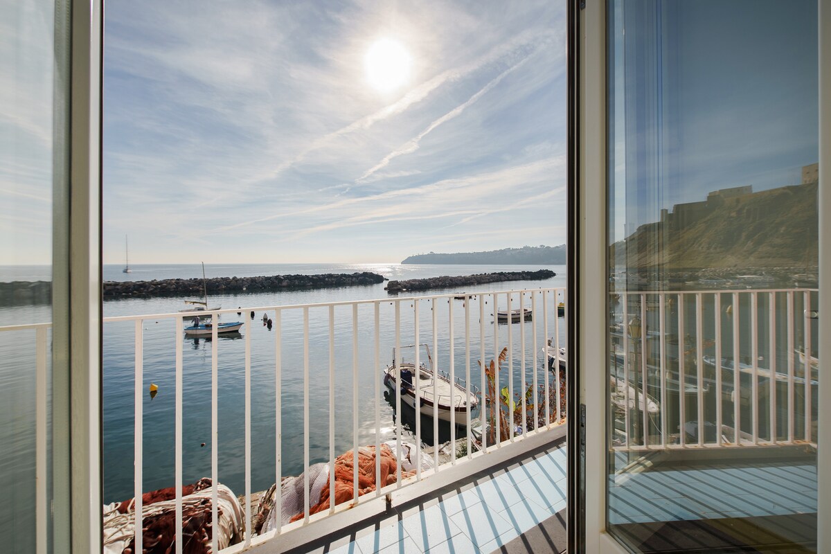 Tá an teach nua - chóirithe 40m2 suite in Marina Corricella, limistéar do choisithe go héasca, 7mt ón bhfarraige. Chun an teach a bhaint amach, tá 2 fhoireann staighrí ar feadh 30 céim san iomlán. Ón ardán beag is féidir leat breathnú amach ar theacht na n - iascairí. In aice láimhe tá bialanna, beáir, siopaí uachtar reoite agus siopaí lámhcheardaíochta áitiúla. Is féidir teacht ar thrá Chiaia le cosa (20min) nó ar sheirbhís báid tacsaí. San earrach/samhradh tá iompar paisinéirí ar hidreafoil ó Sorrento go Procida gníomhach