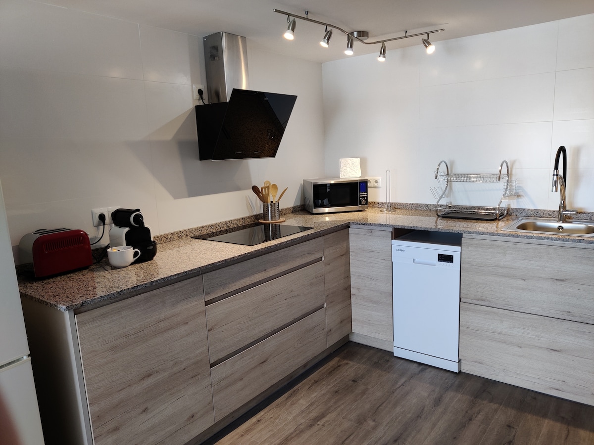 'SA BHAILE' AS BAILE Conas ba chóir go mbraithfeadh an teach: Árasán úrnua athchóirithe go hiomlán ina bhfuil na saoráidí go léir a theastaíonn. Ag siúlóid 4 nóiméad ar shiúl ón trá agus siúlóid 10 nóiméad ar shiúl ón stáisiún traenach (Montemar Alto). Maol suite ar an 2ú hurlár agus ardaitheoir os comhair an ghairdín istigh agus an linn snámha agus an timpeallacht shíochánta. Cistin nua lánfheistithe, 1 ardán, aonaid AC i ngach seomra agus seomraí folctha dearthóir nua, Wi - Fi SAOR IN AISCE agus teilifíseán 4K le SmartTv